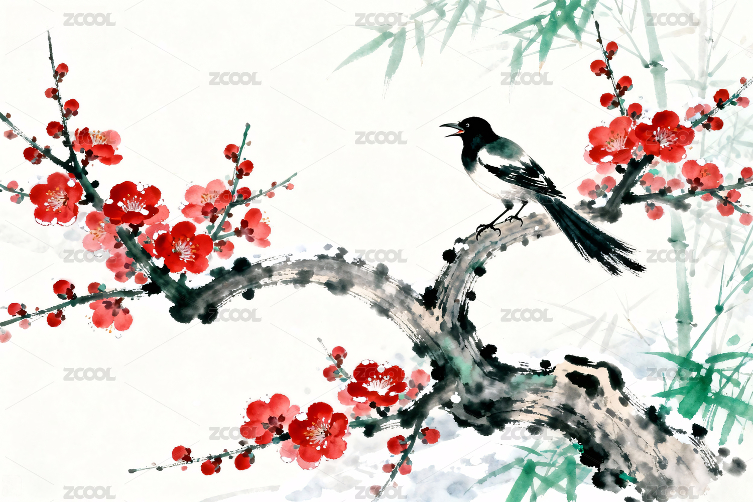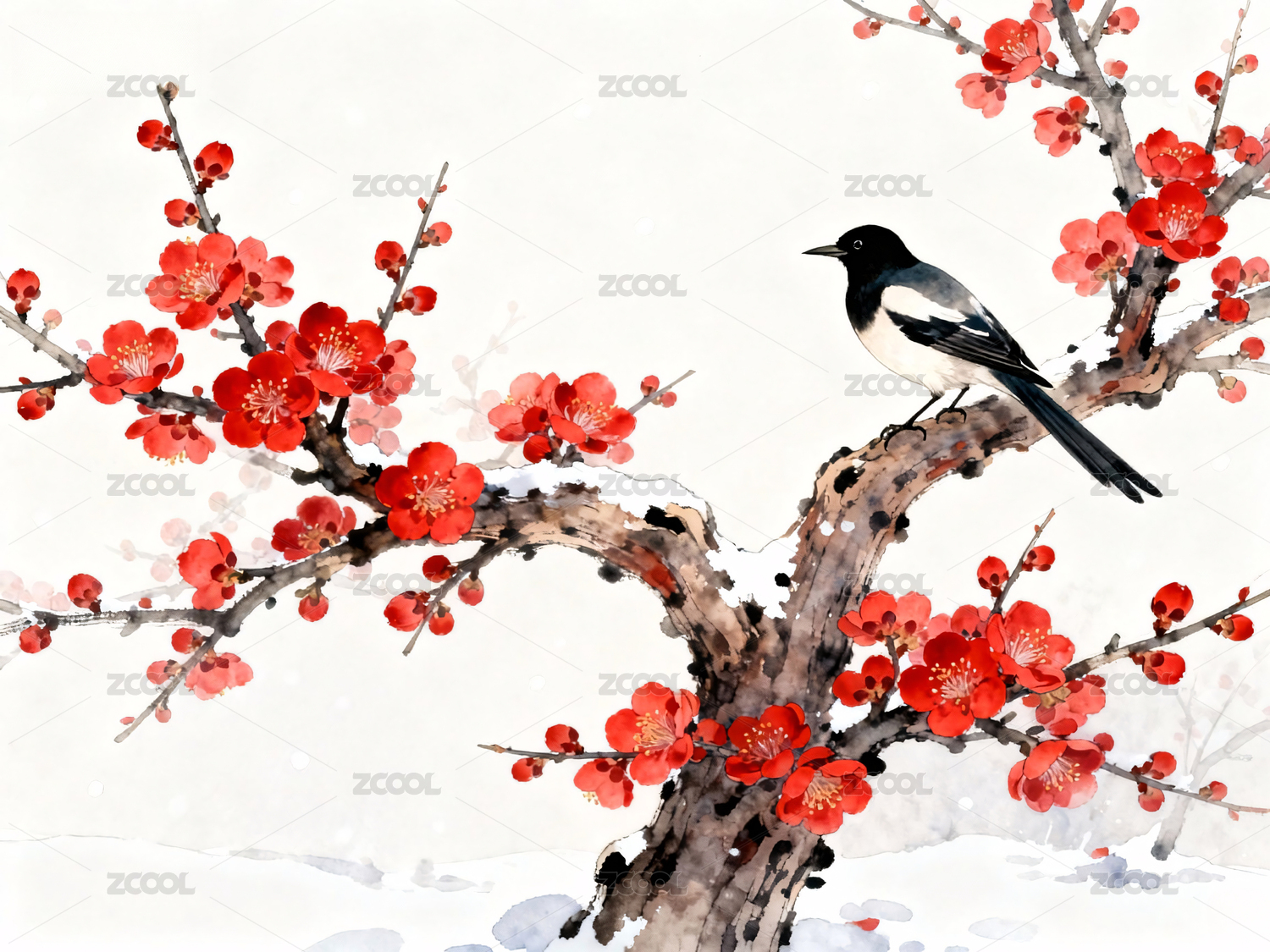 水墨梅花花鳥(niǎo)畫(huà)