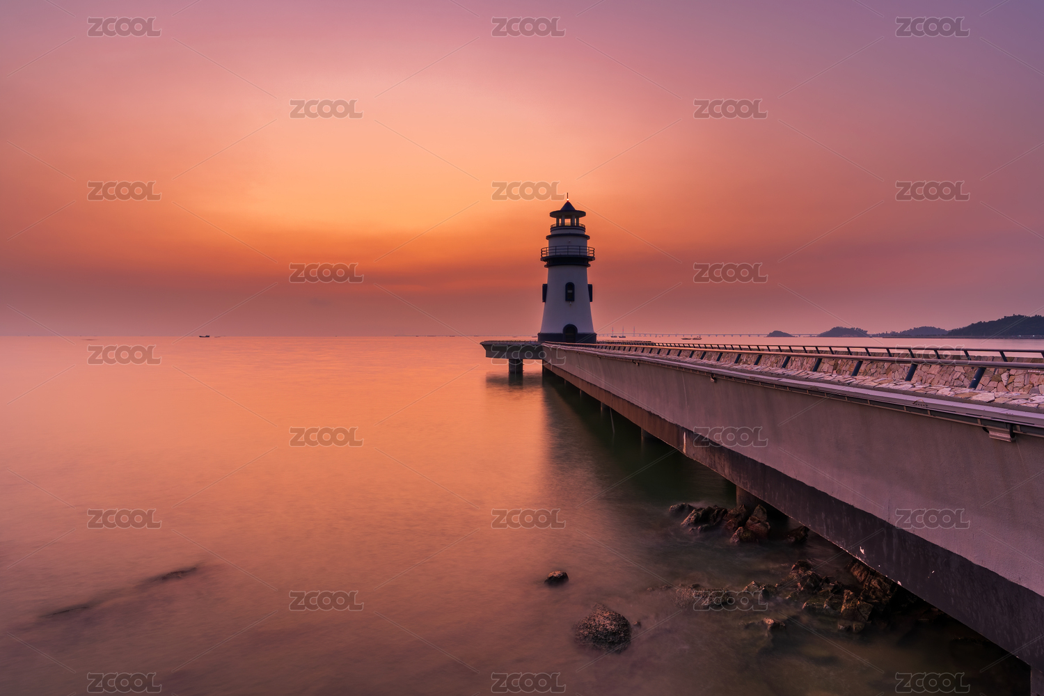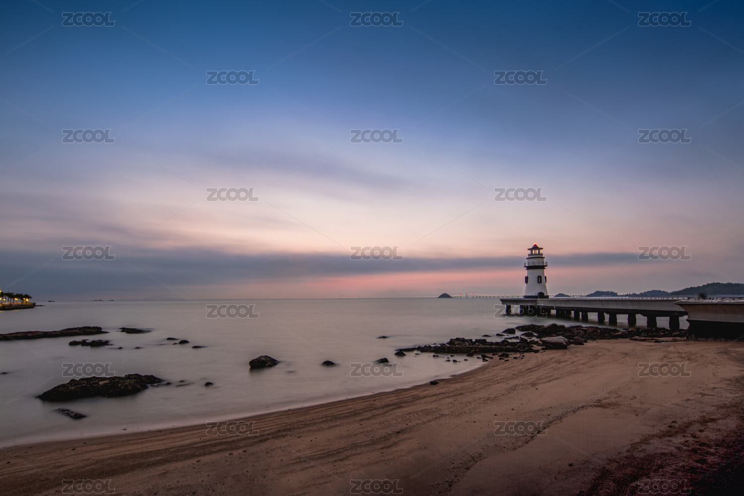 中國廣東珠海海濱泳場燈塔早上晨曦風(fēng)光