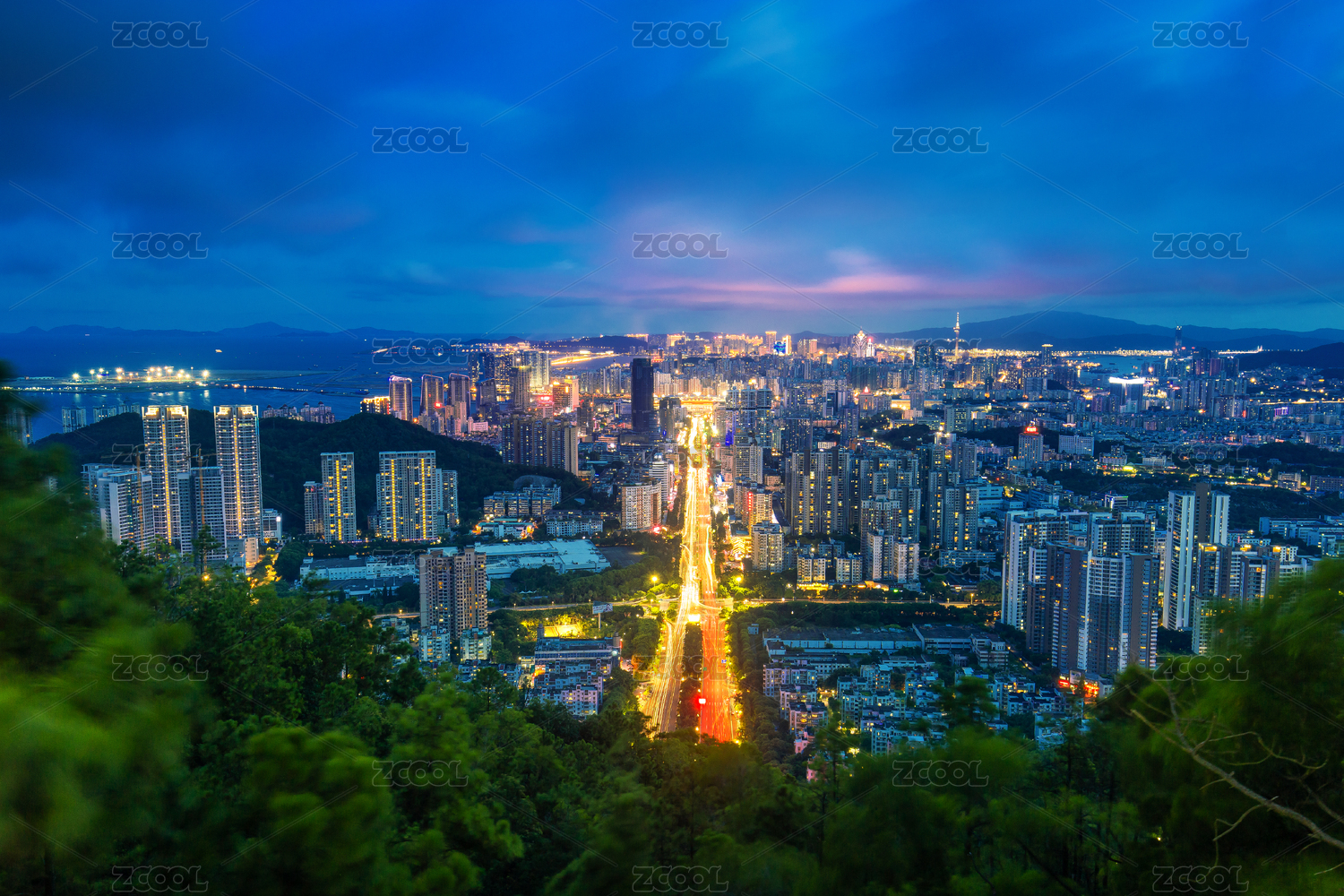 廣東珠海板樟山俯瞰拱北CBD夜景