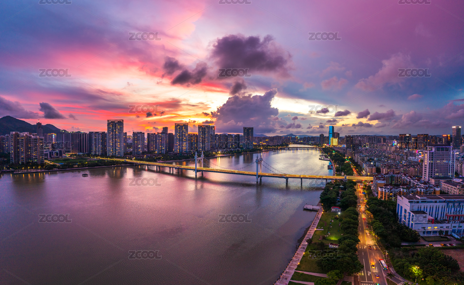廣東珠海白石橋火燒云晚霞航拍