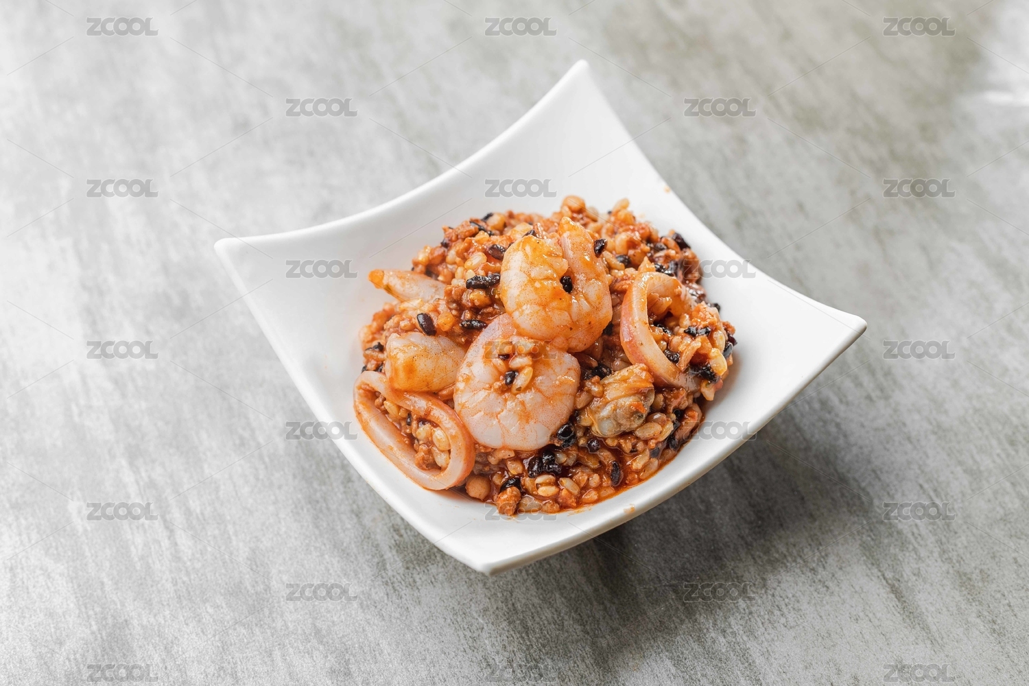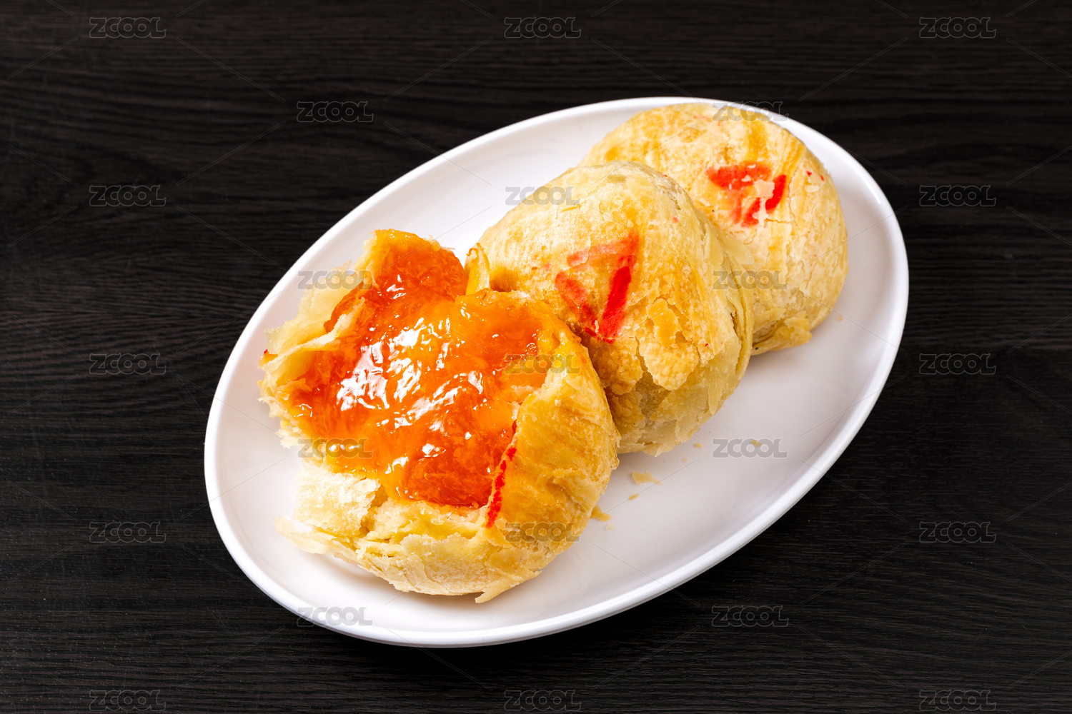 淺色盤子里的火鍋菜品:翡翠鹵肉包