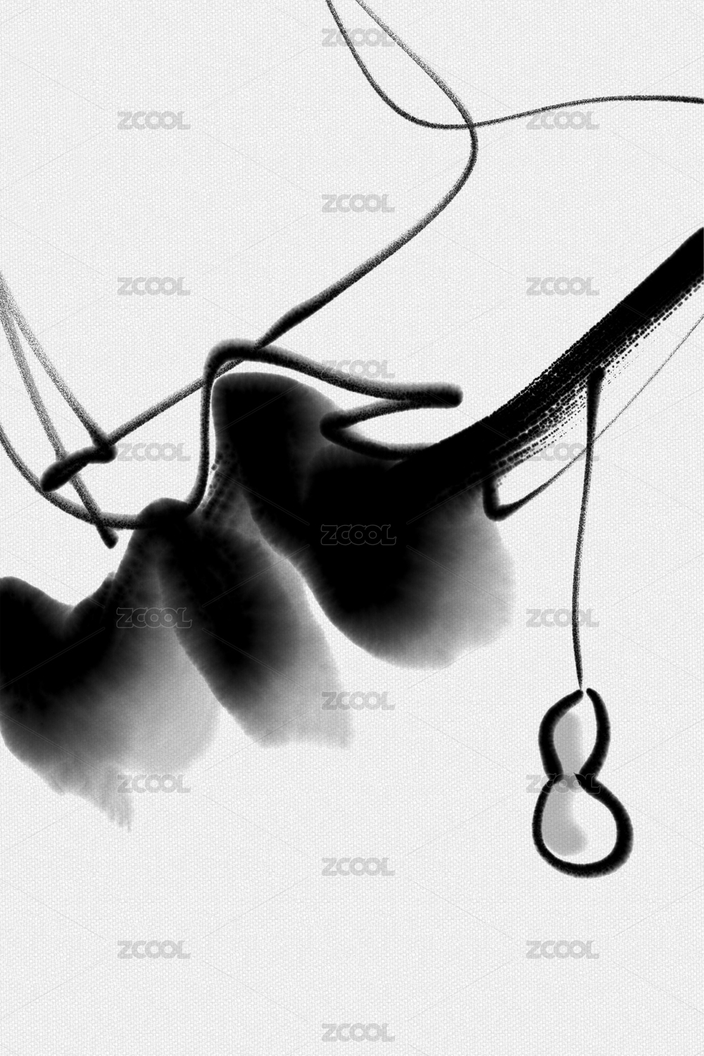 ipad手繪現(xiàn)代極簡抽象水墨葫蘆花鳥畫