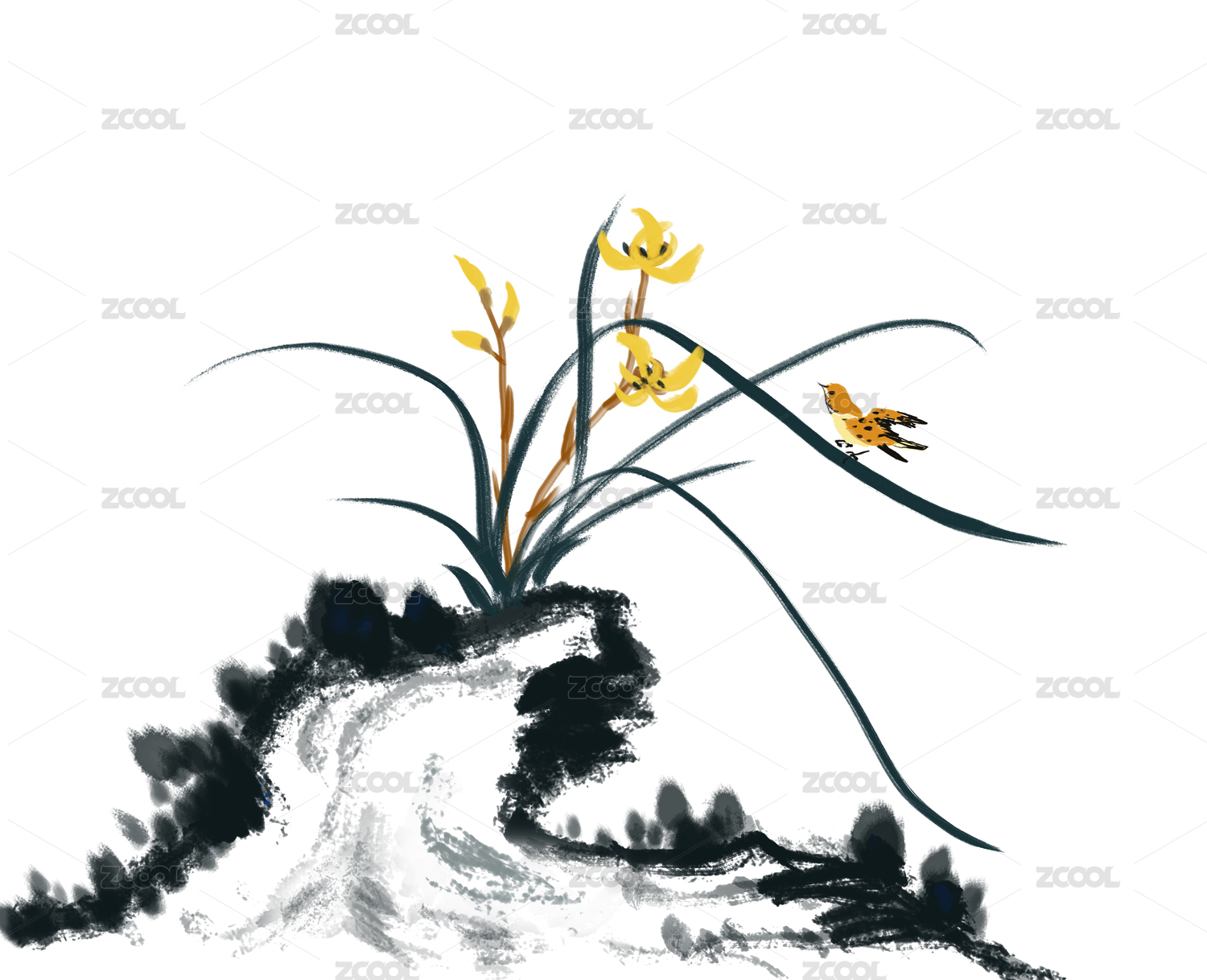 石頭蘭花水墨花鳥畫