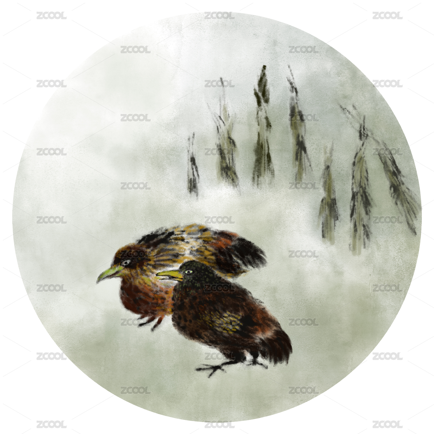 圓形中國畫國畫花鳥畫水墨畫