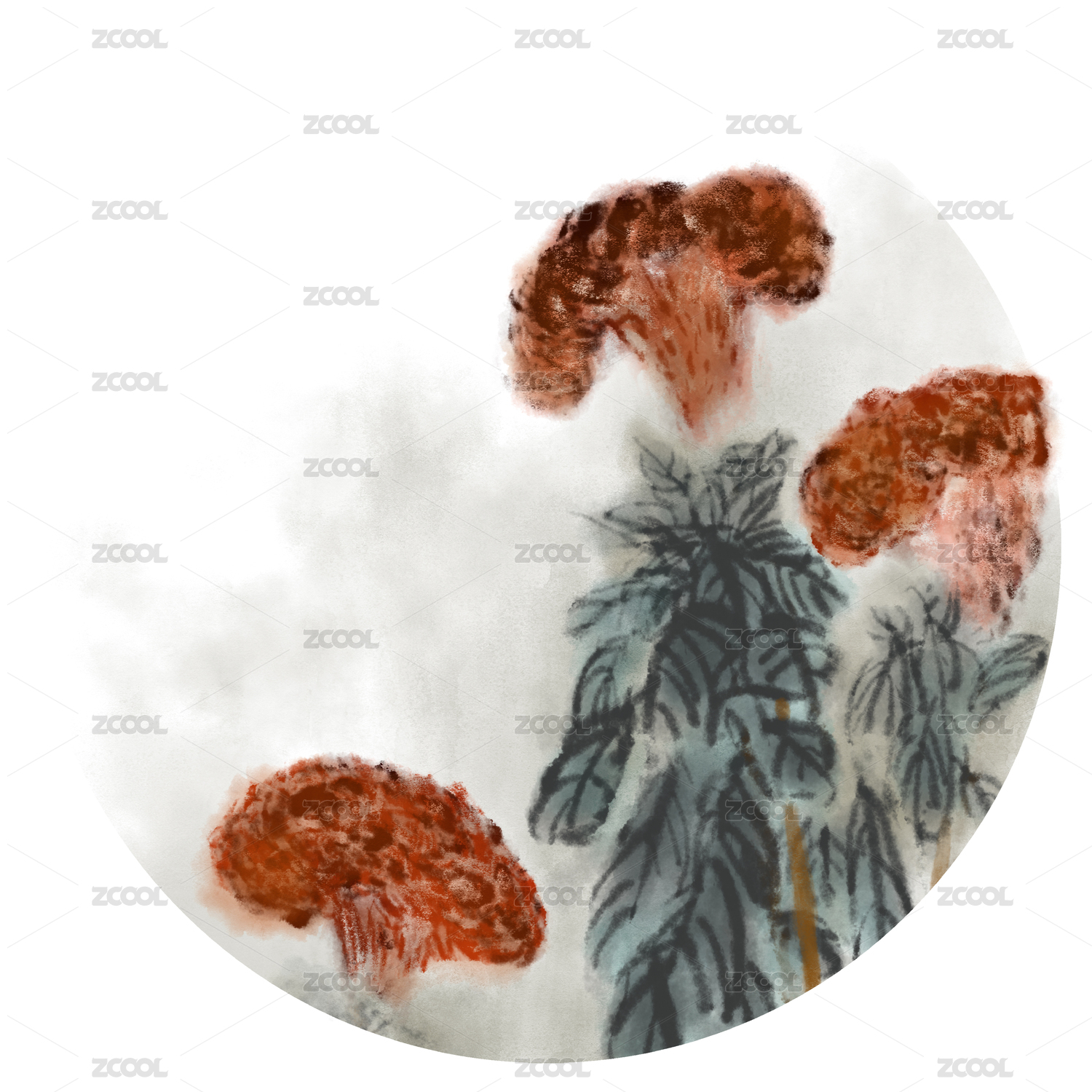 中國風(fēng)插畫水墨畫花鳥畫手繪雞冠花