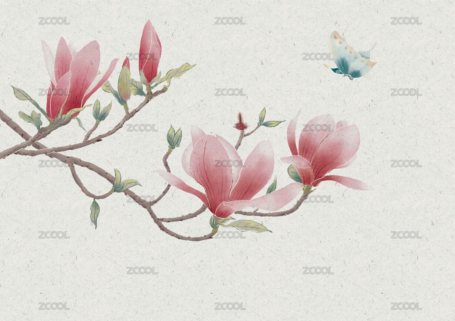 一枝吸引蝴蝶的紅色玉蘭花