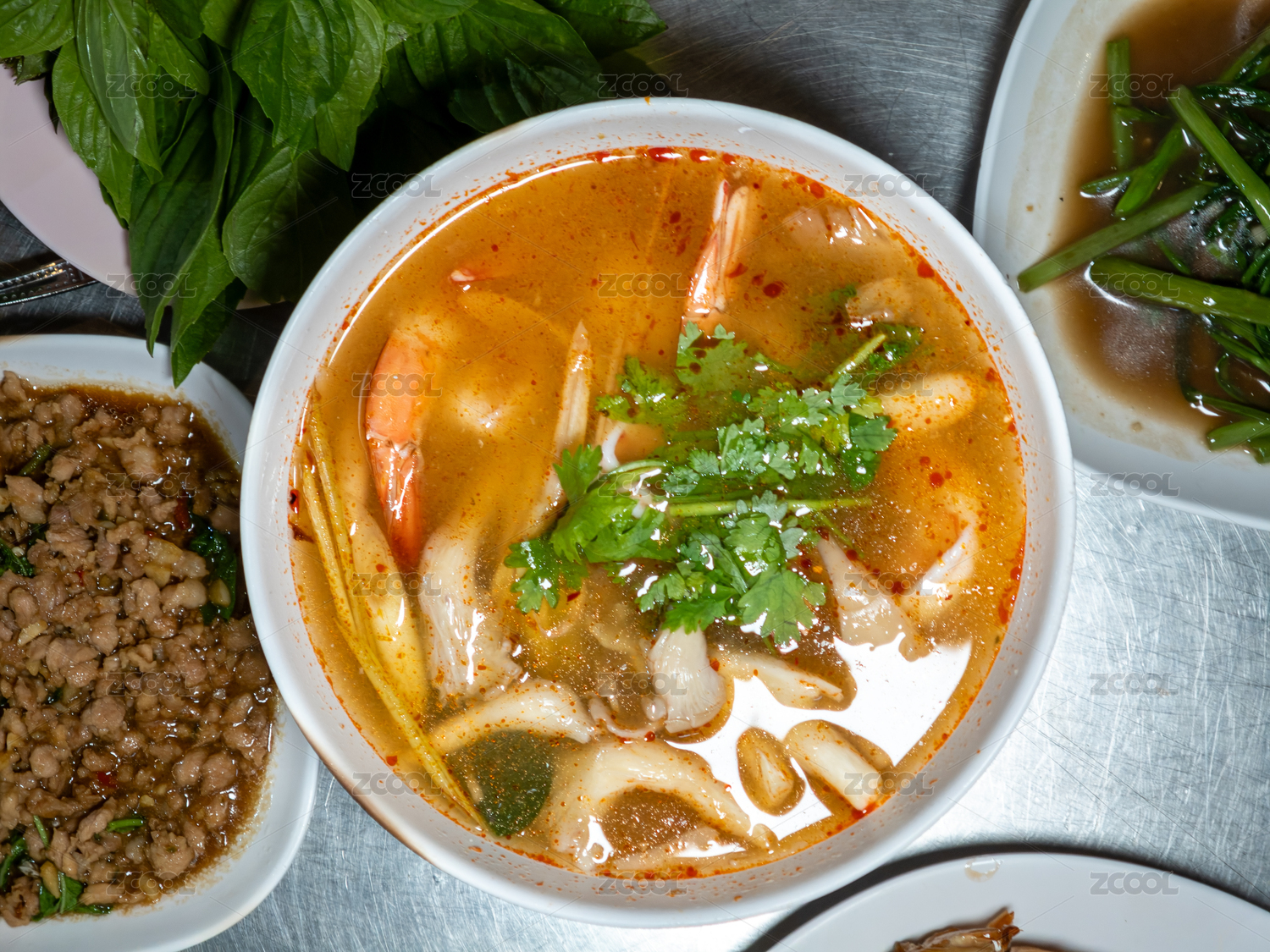 一桌豐盛的泰國北部美食菜肴