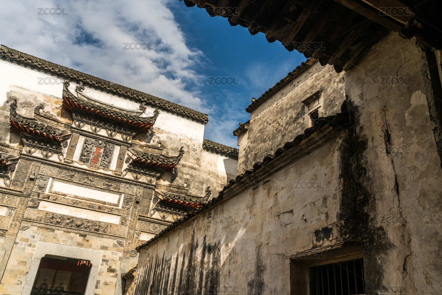 中式古典園林建筑磚瓦裝飾外墻面背景