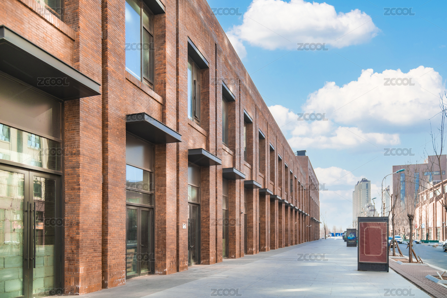現(xiàn)代建筑前的空磚地面
