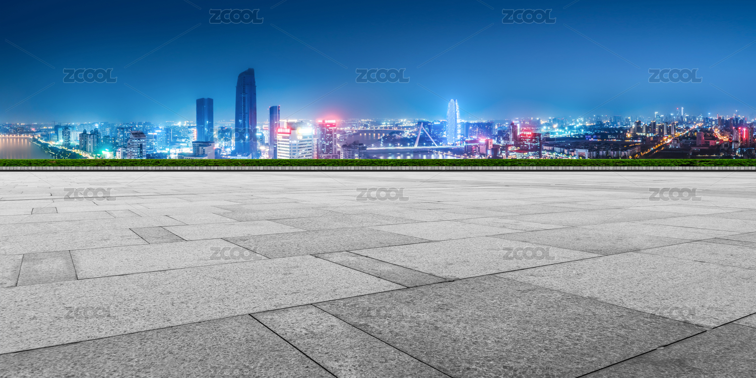 廣場地磚和城市現(xiàn)代建筑群背景