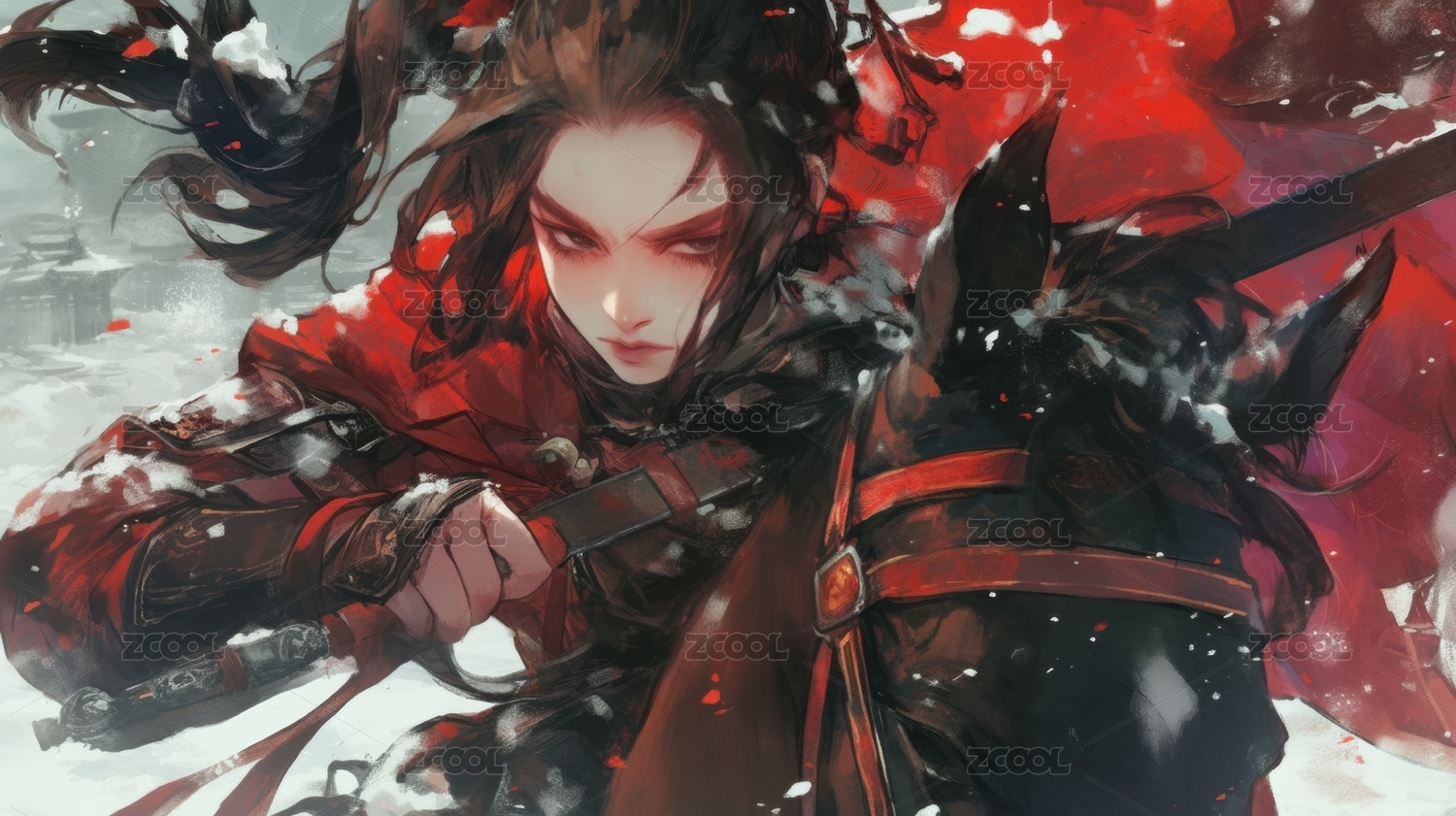 紅衣戰(zhàn)士在雪地中的戰(zhàn)斗姿態(tài)