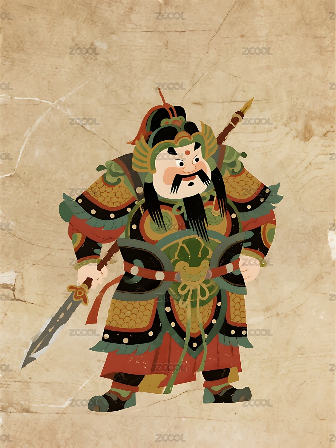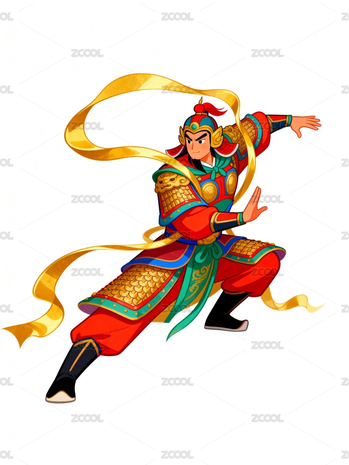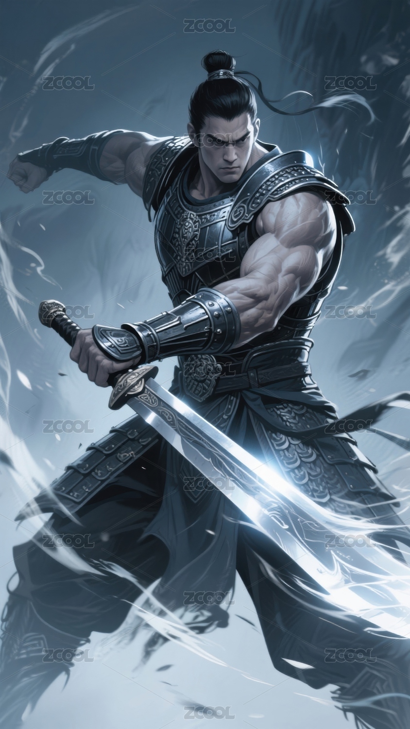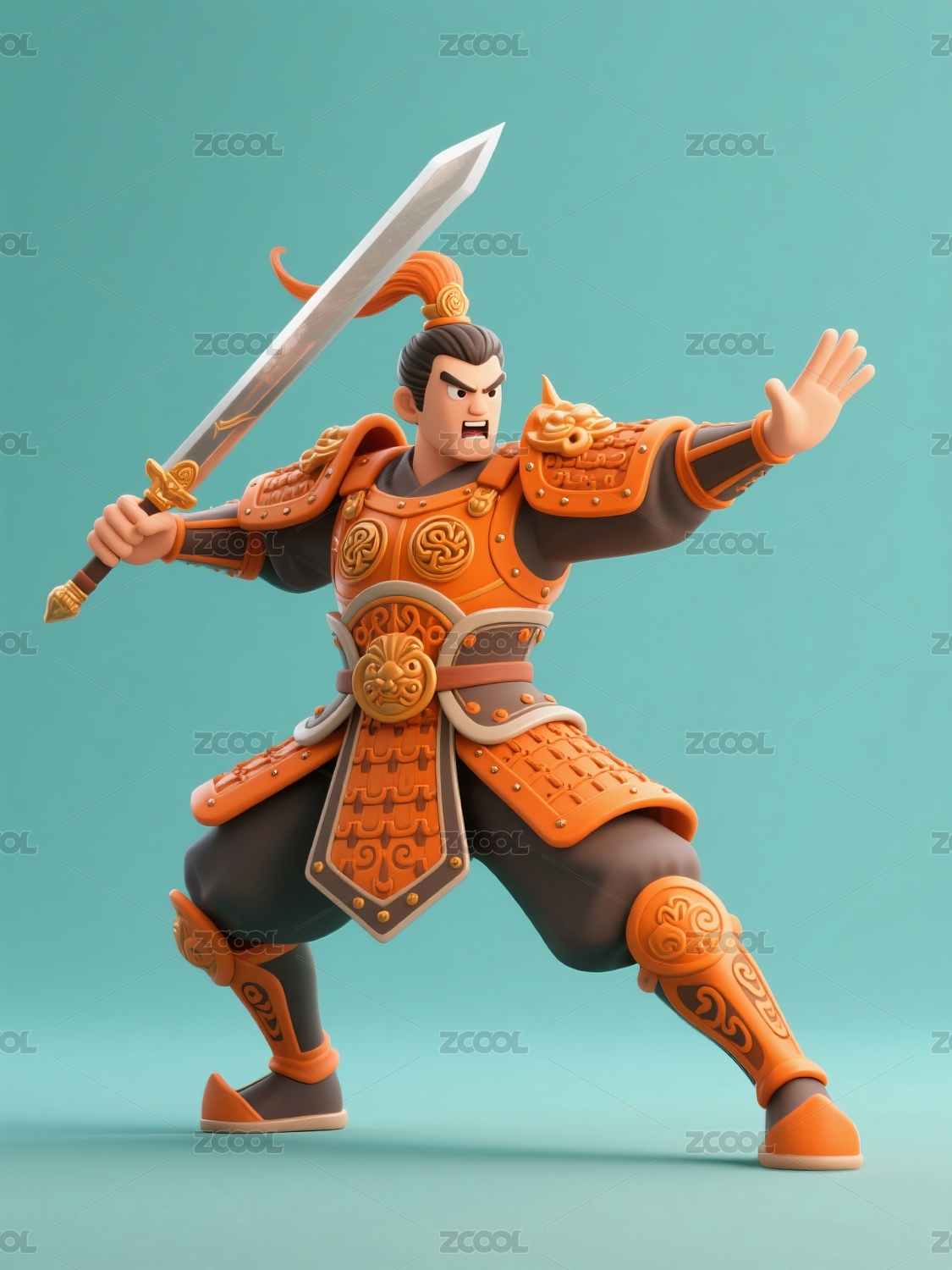 勇猛武將披甲揮劍