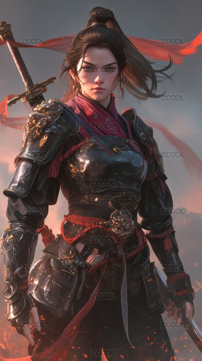 身穿盔甲的女戰(zhàn)士手持長劍