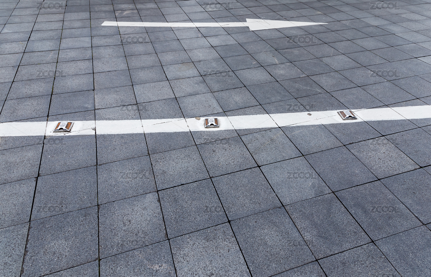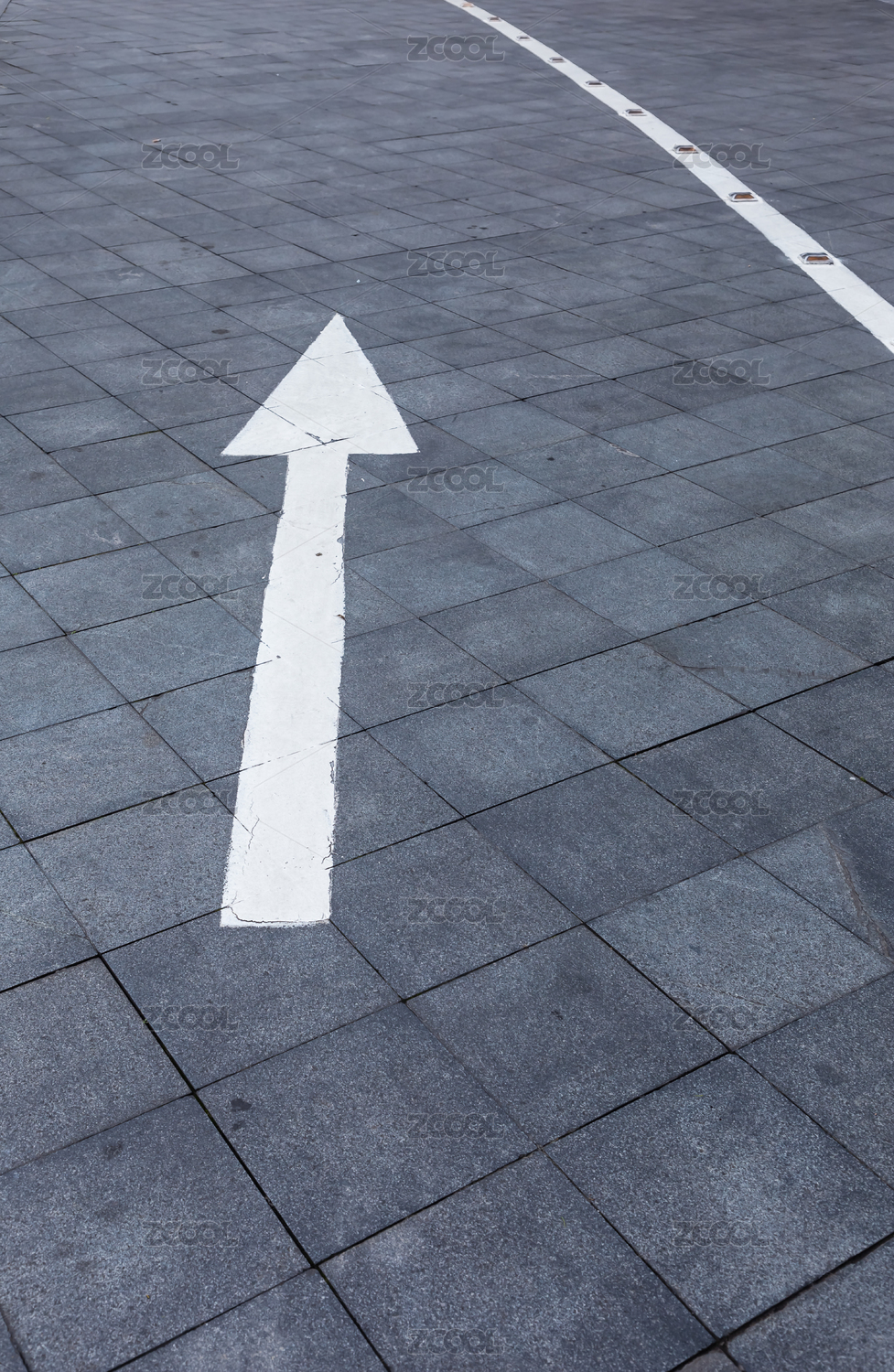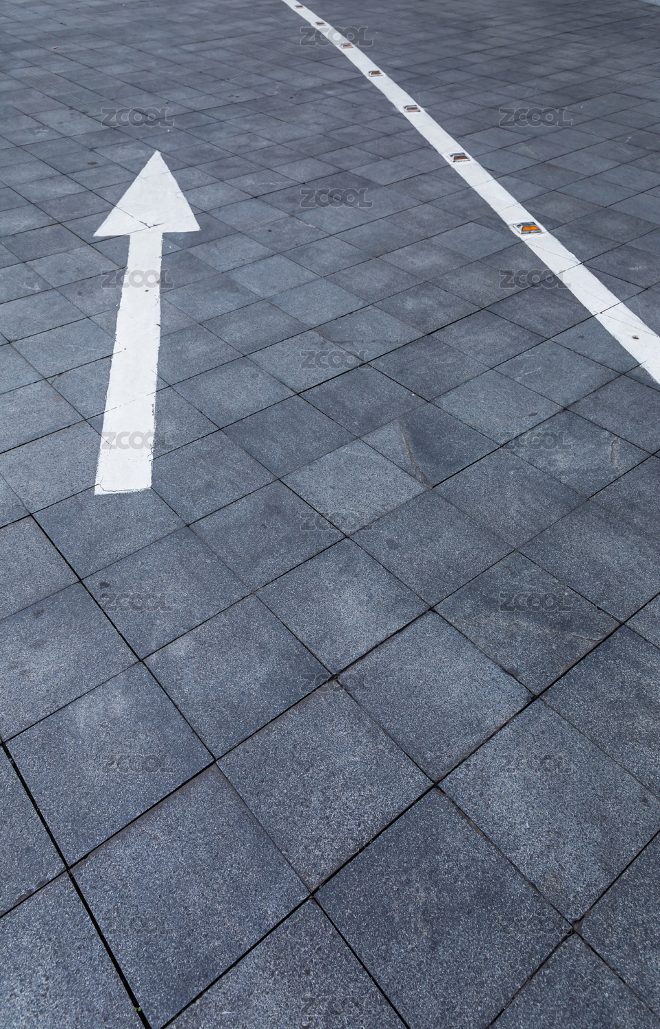 中國城市金融區(qū)方磚路面車道箭頭指示特寫