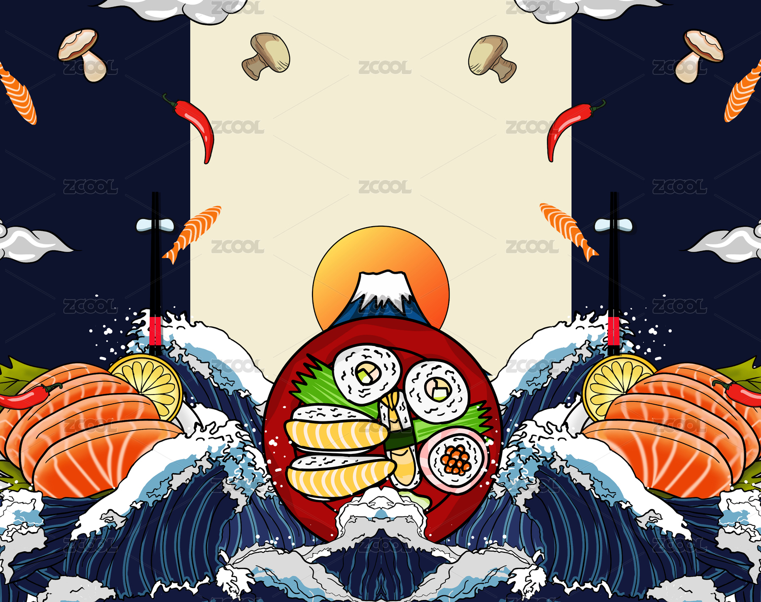 原創(chuàng)手繪卡通日本料理壽司插畫餐廳裝飾畫素