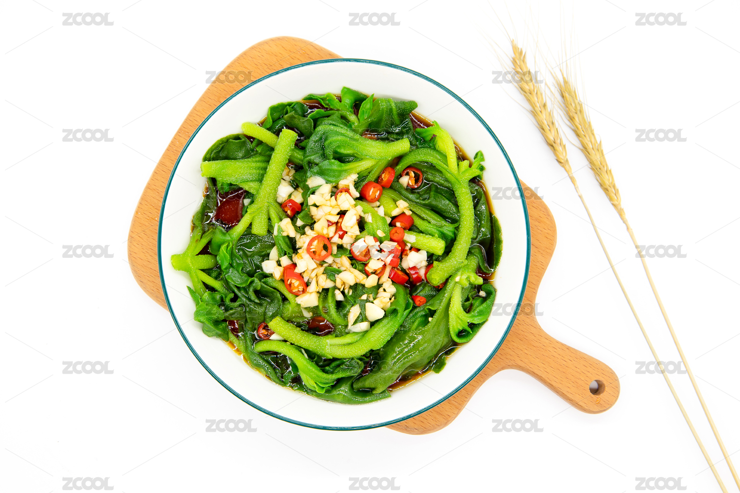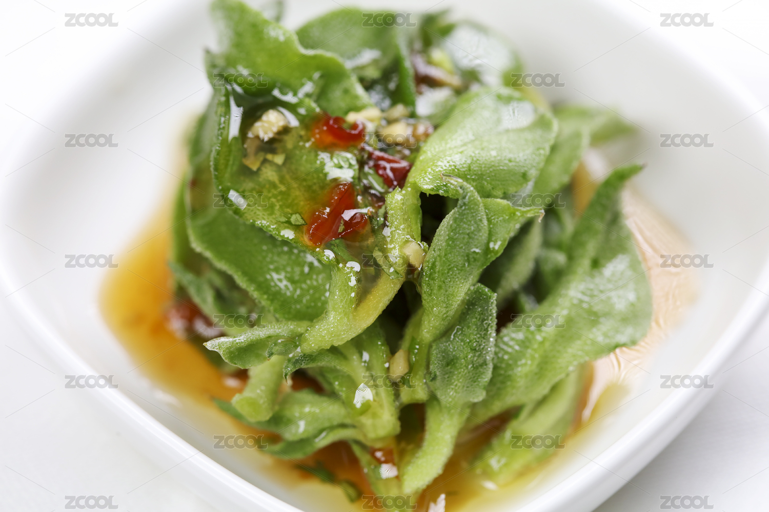 白色背景一盤涼拌冰菜