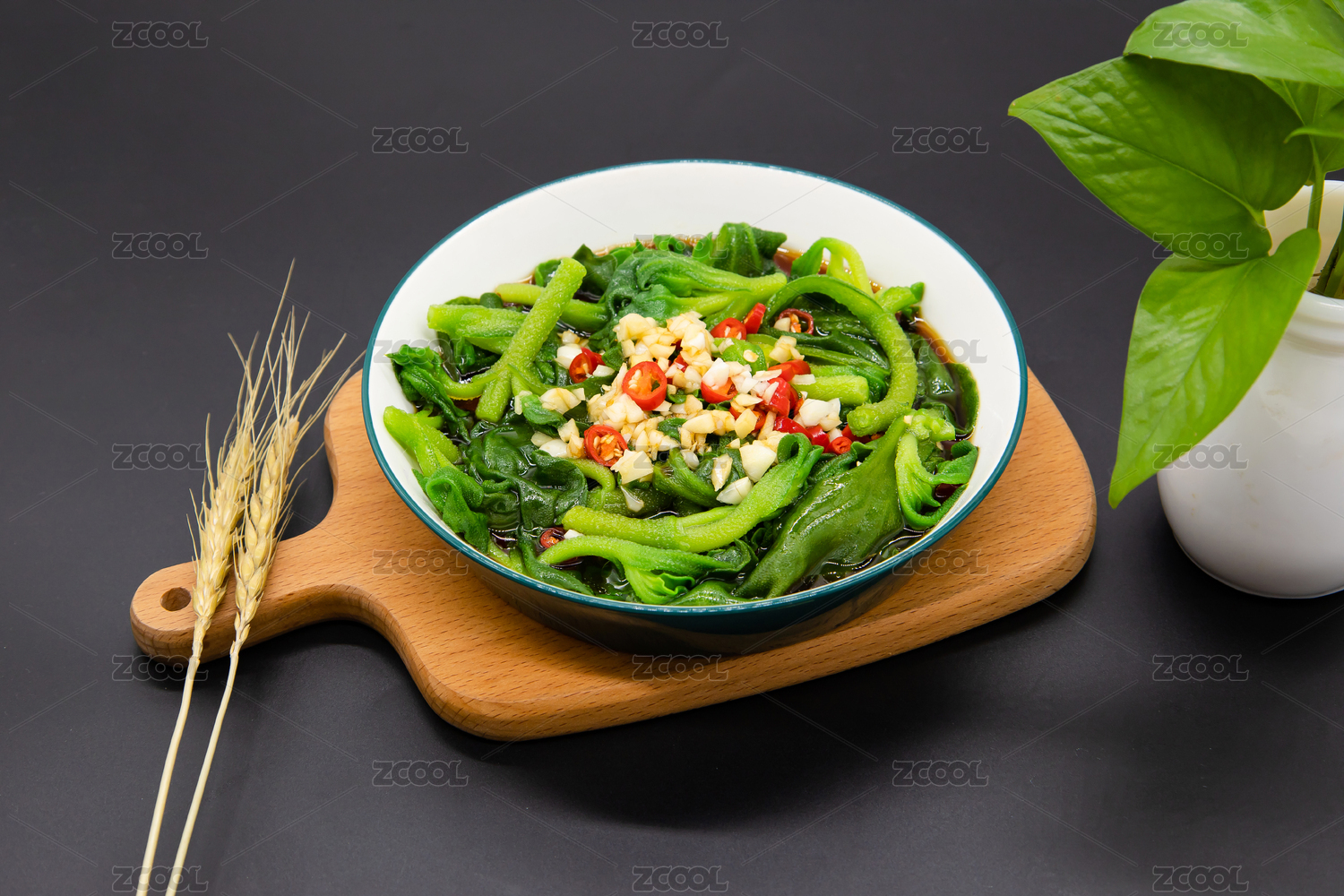 黑背景一盤涼拌冰菜