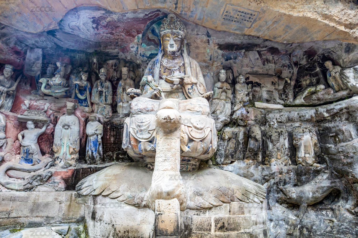 中國重慶大足石刻寶頂山景區(qū)孔雀明王經(jīng)變相