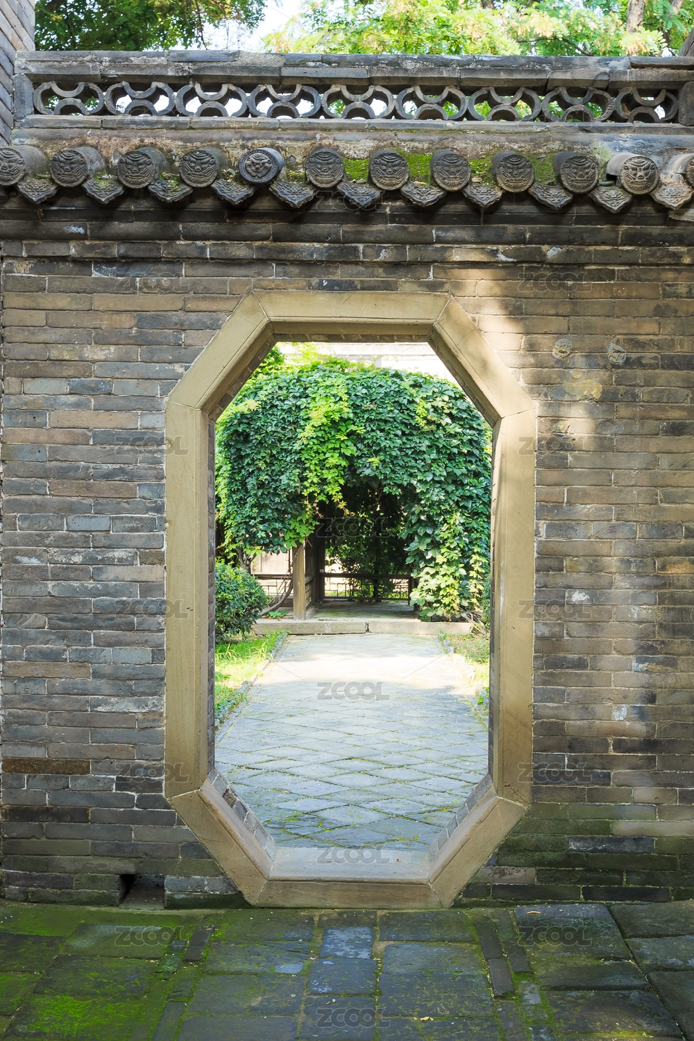 古代中式復(fù)古傳統(tǒng)建筑瓶子月洞門洞