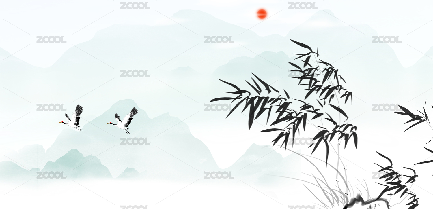 水墨風(fēng)格古典詩詞意境插畫竹子日出