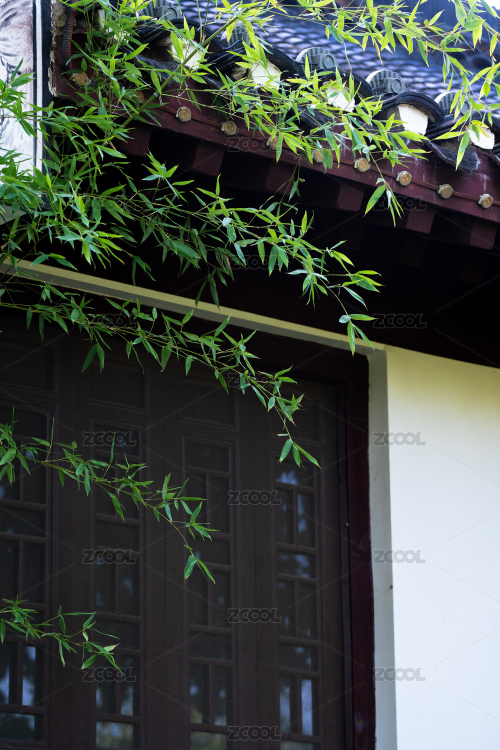 白墻前的竹子