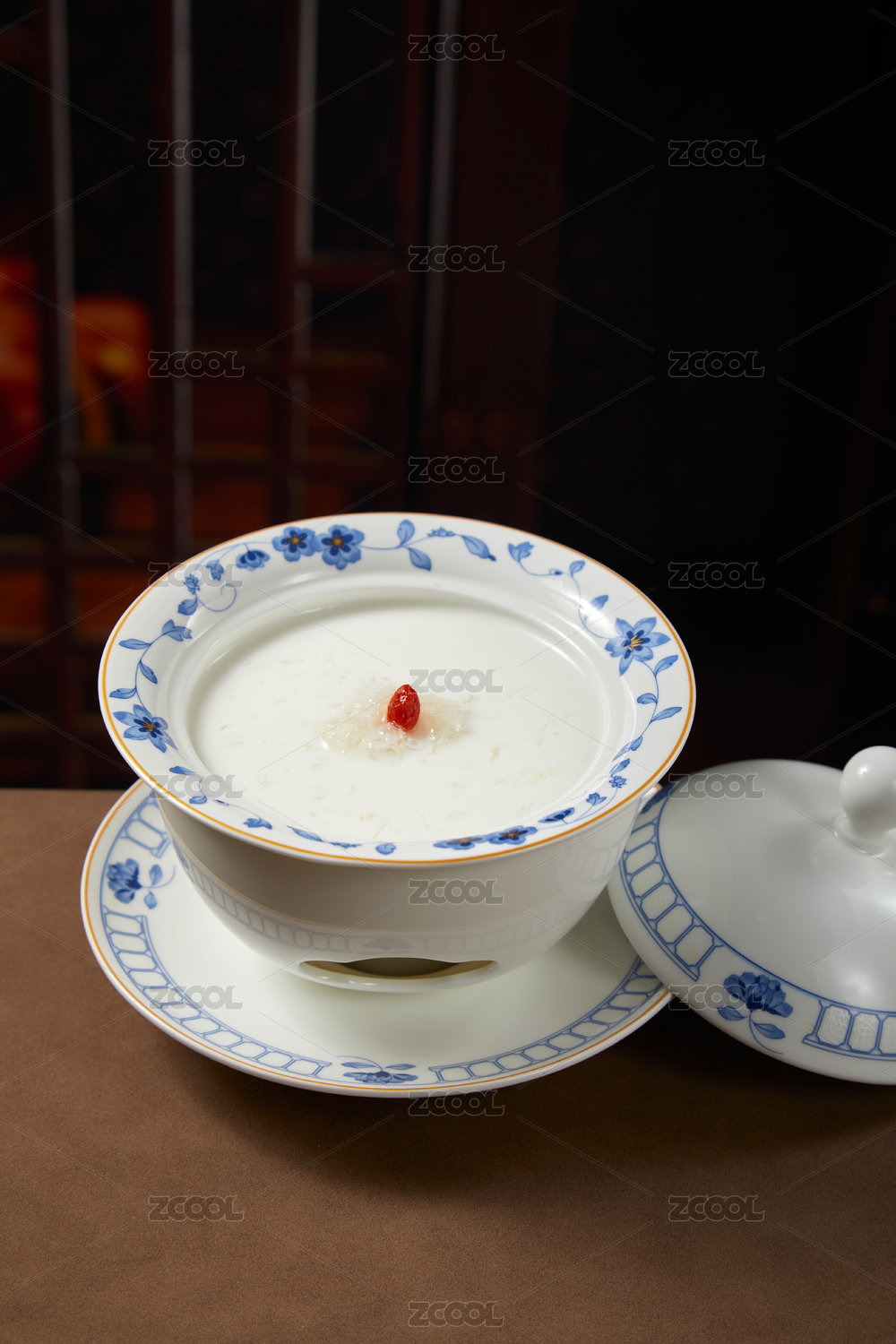 燉盅里的牛奶燕窩粥