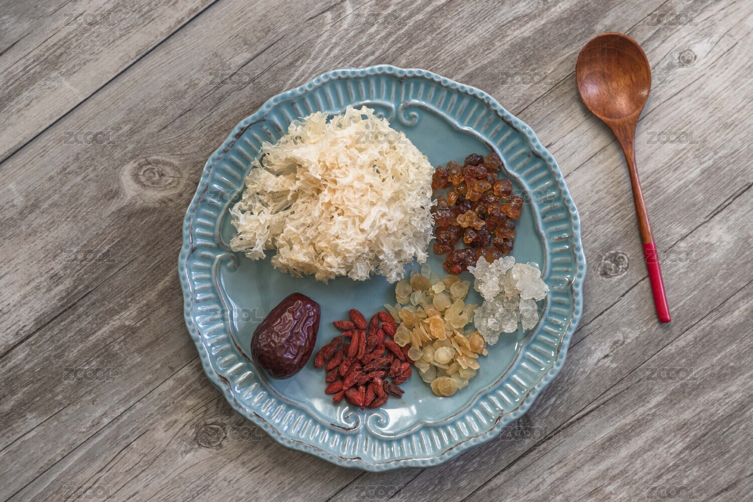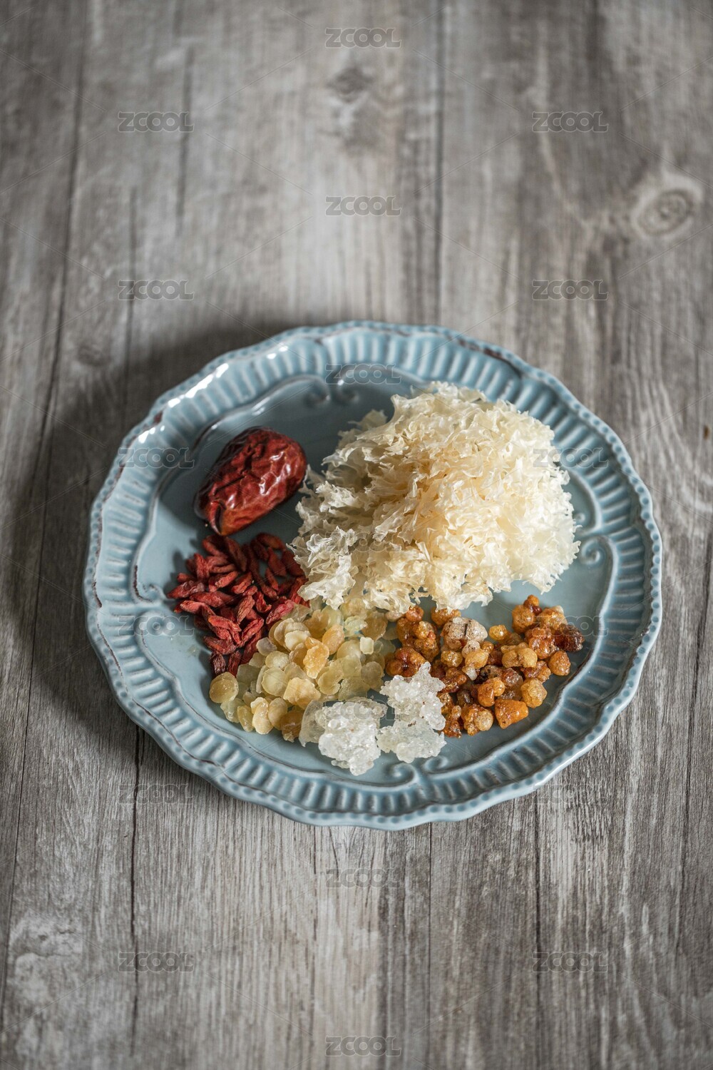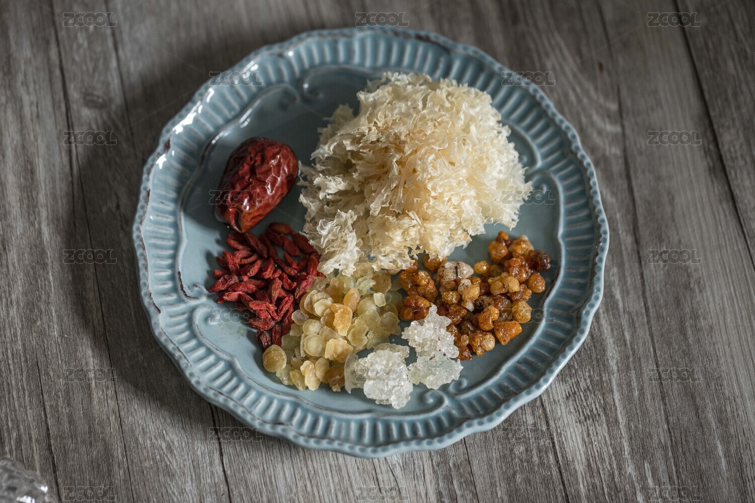木紋桌上放著一盤桃膠銀耳