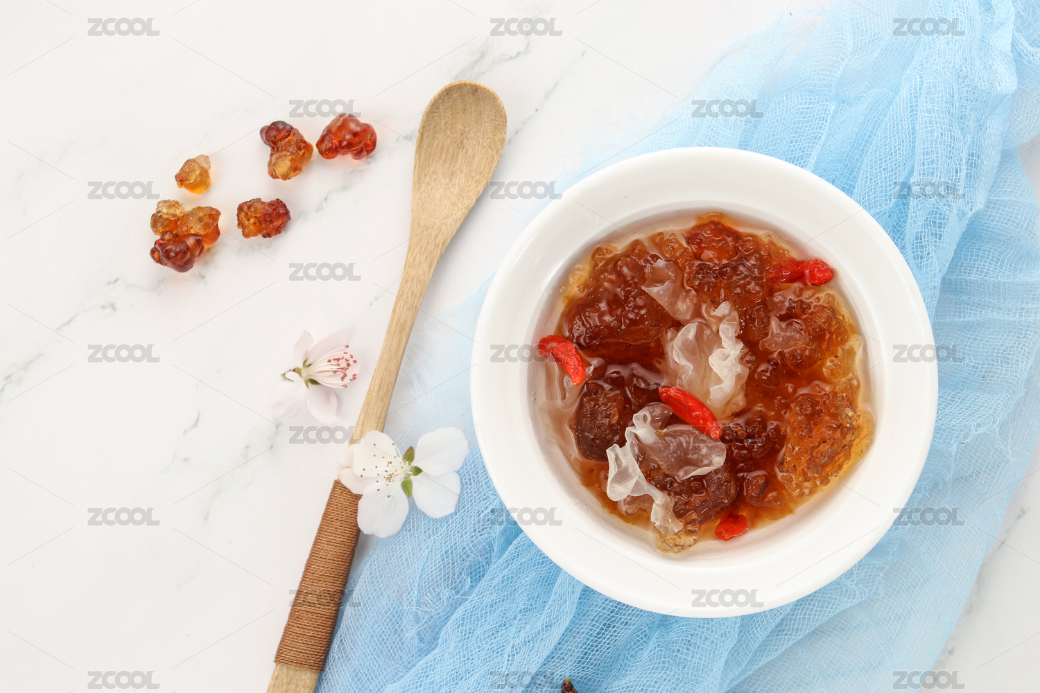 木紋桌上的桃膠銀耳羹