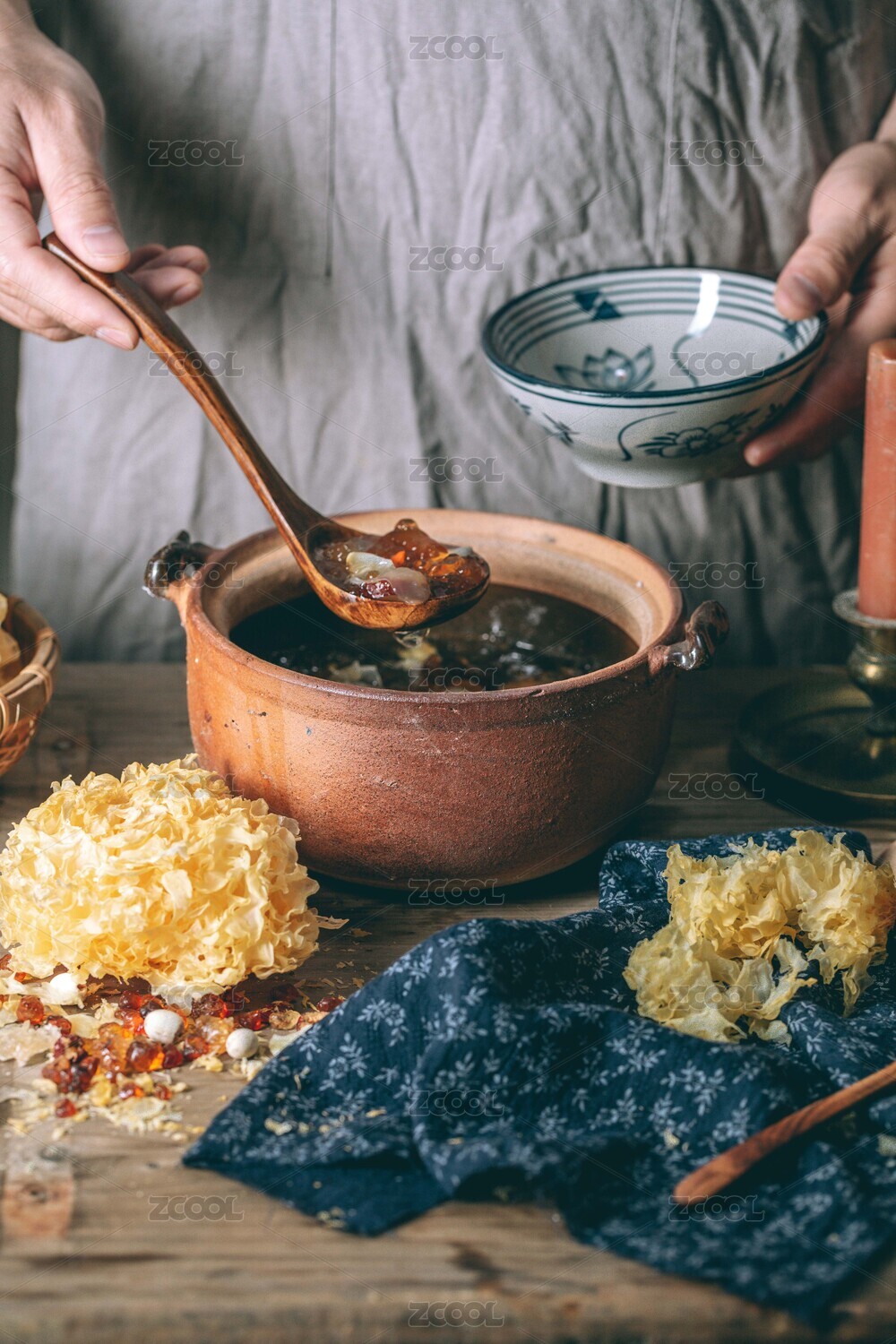 從砂煲里舀出一碗桃膠銀耳羹