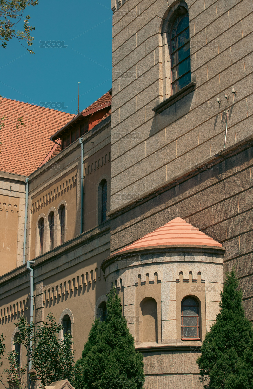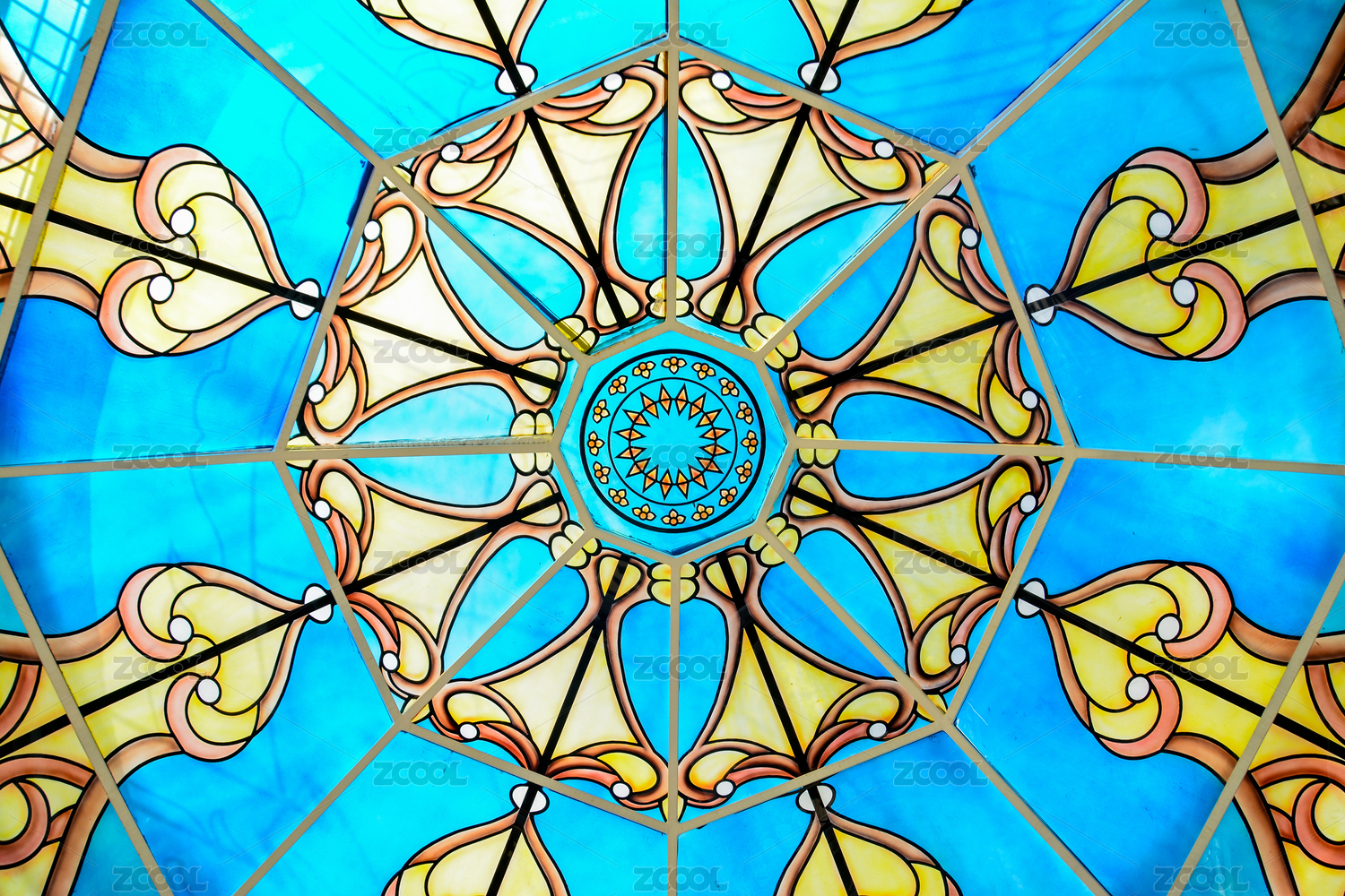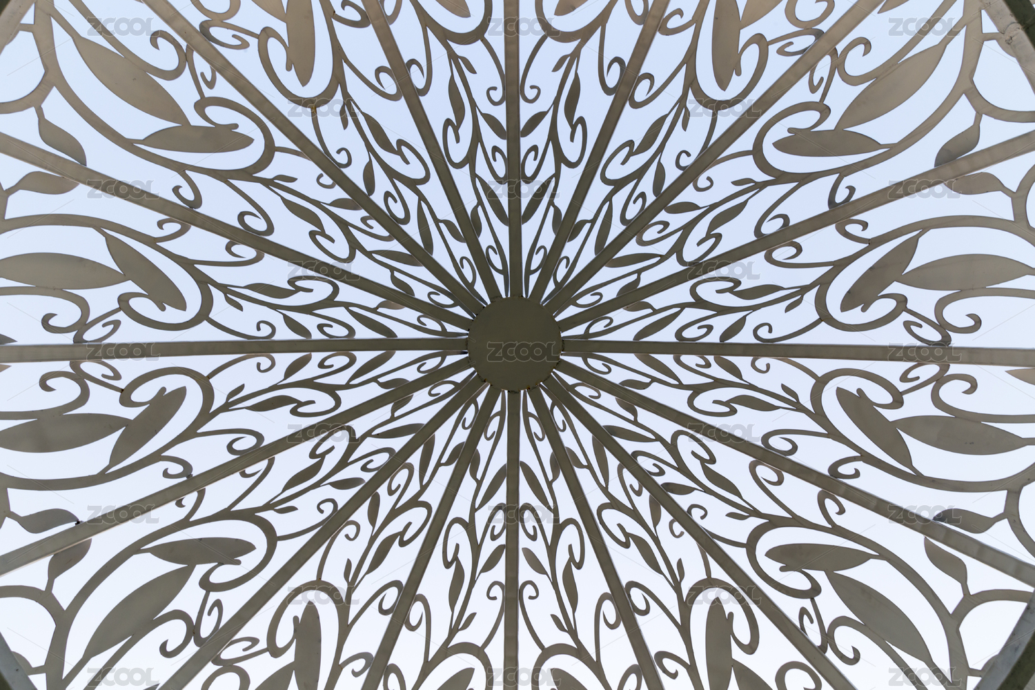 藍(lán)天背景歐式復(fù)古鏤空對稱式設(shè)計(jì)圖案仰望特寫