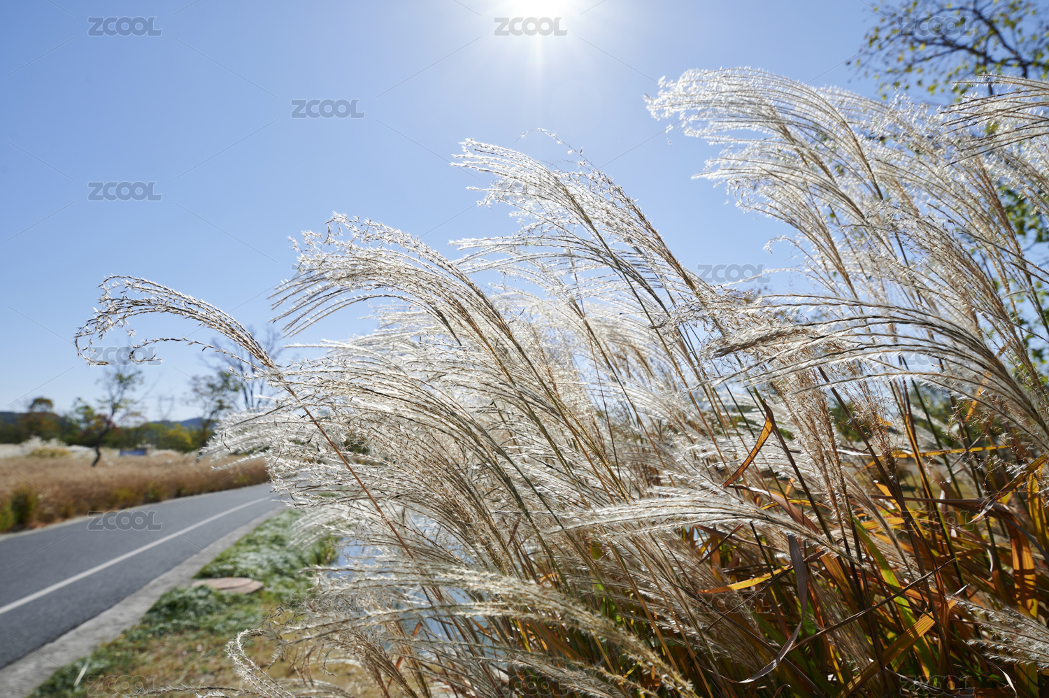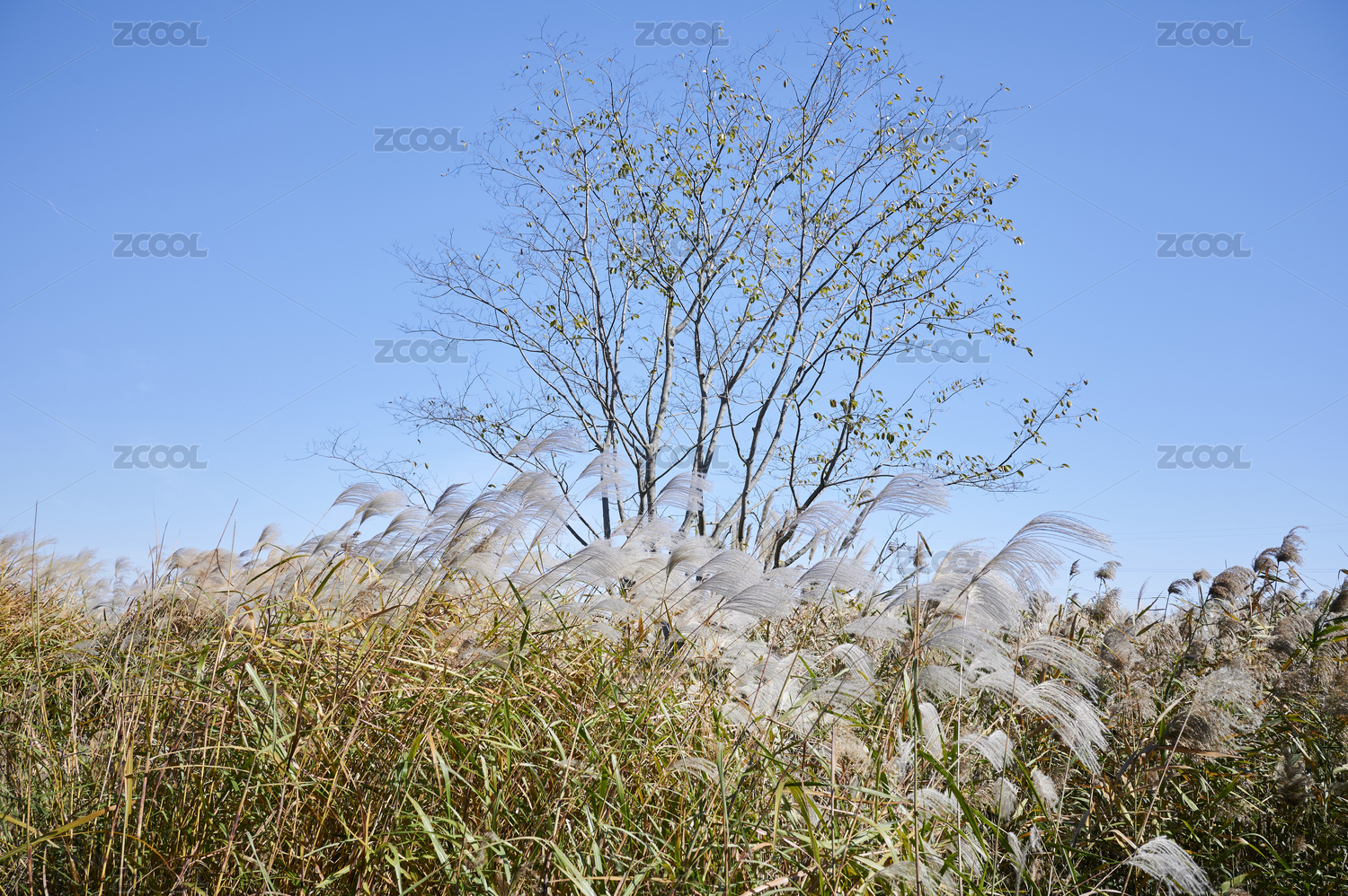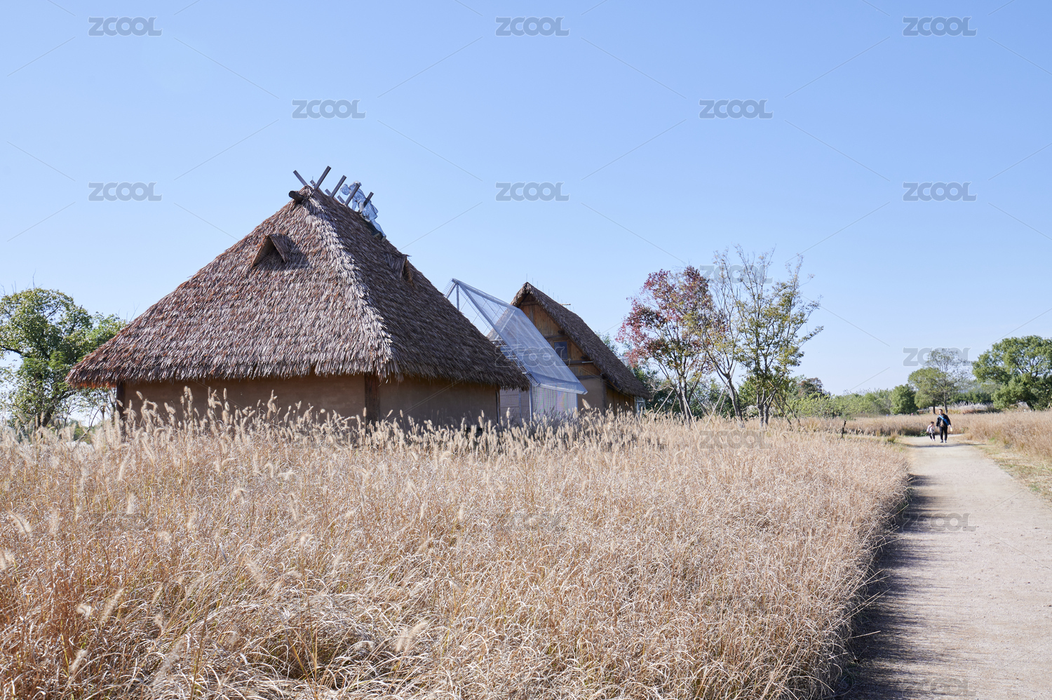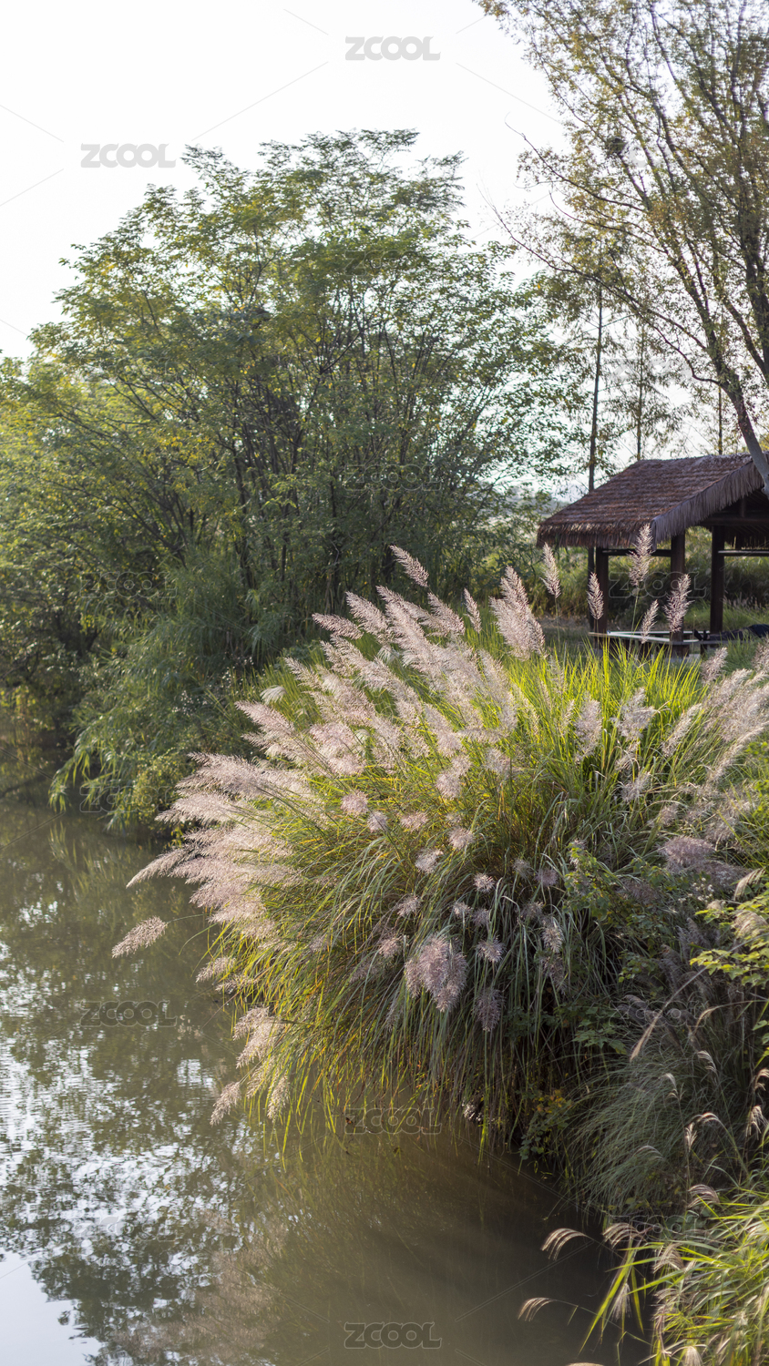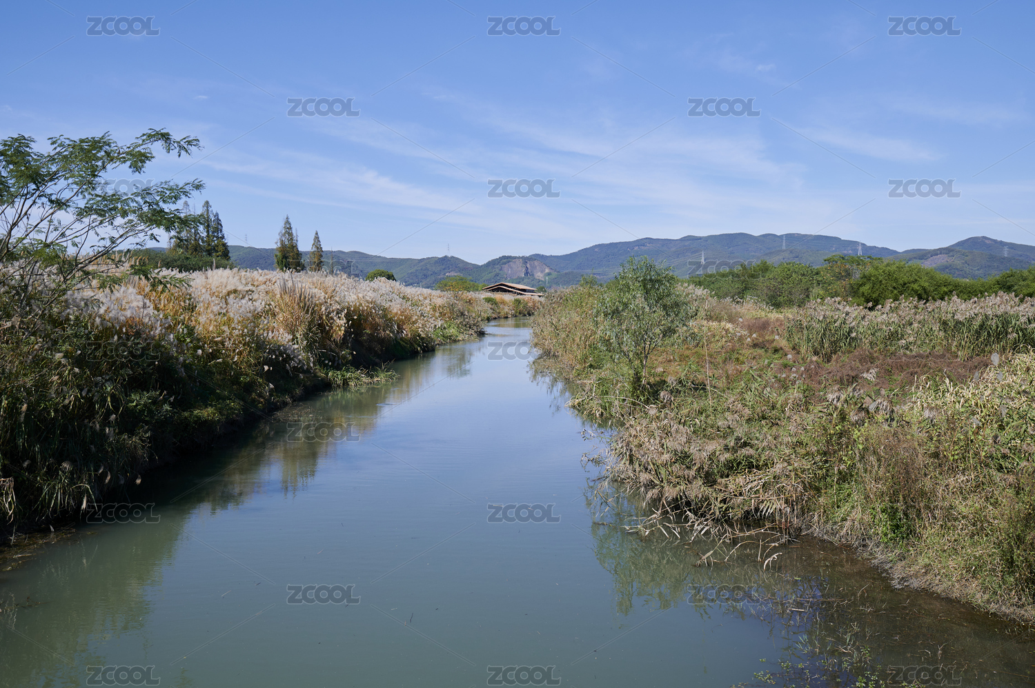 杭州良渚遺址公園夕陽下田野上的樹木和天空