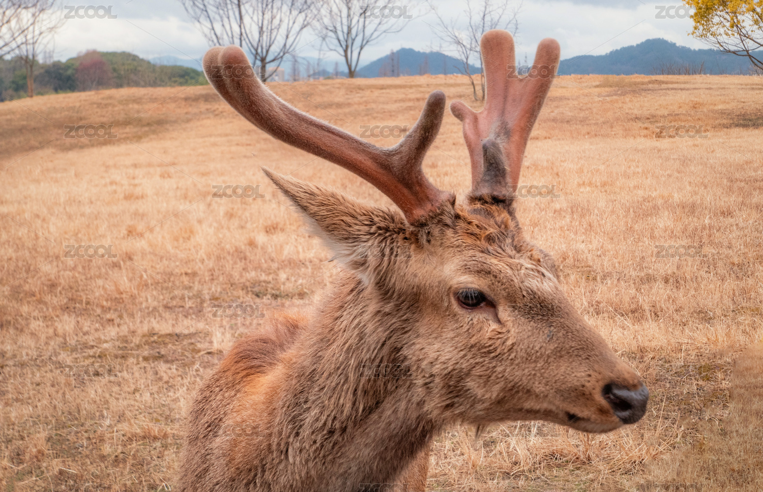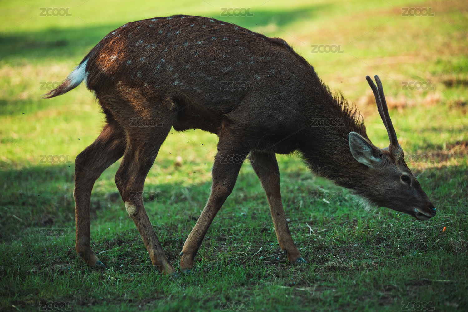 杭州良渚遺址公園,側(cè)立而站的梅花鹿