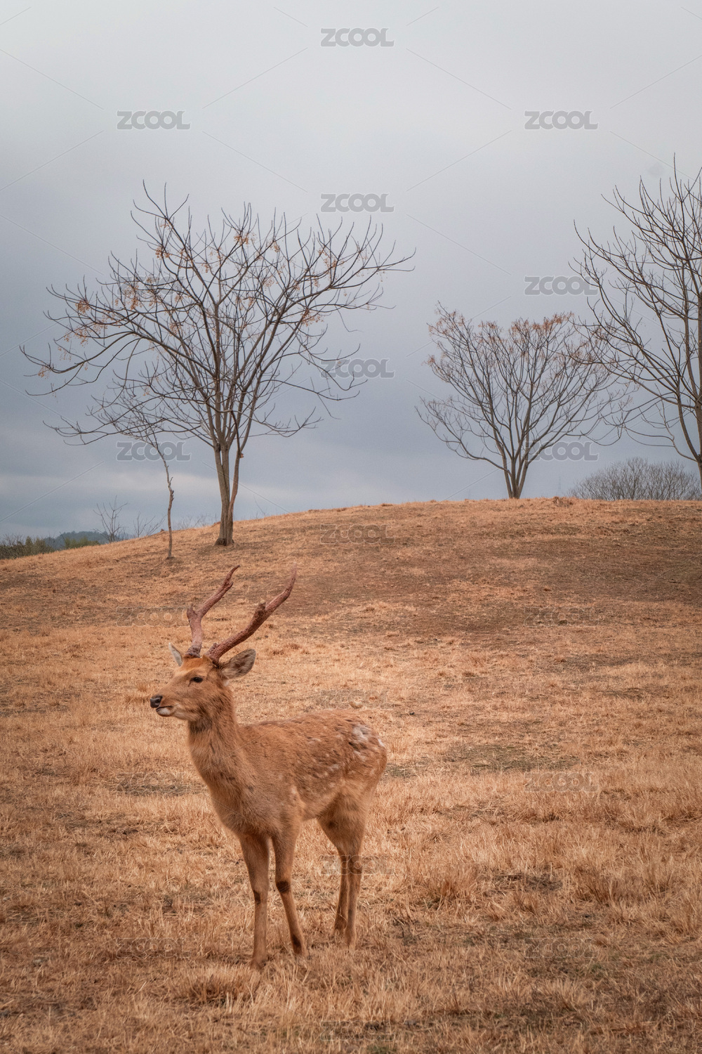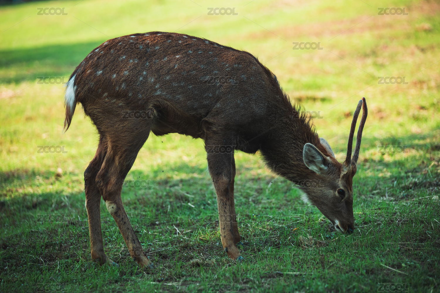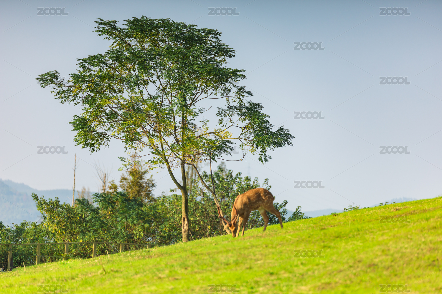 杭州良渚遺址公園鹿苑,一只站立的梅花鹿