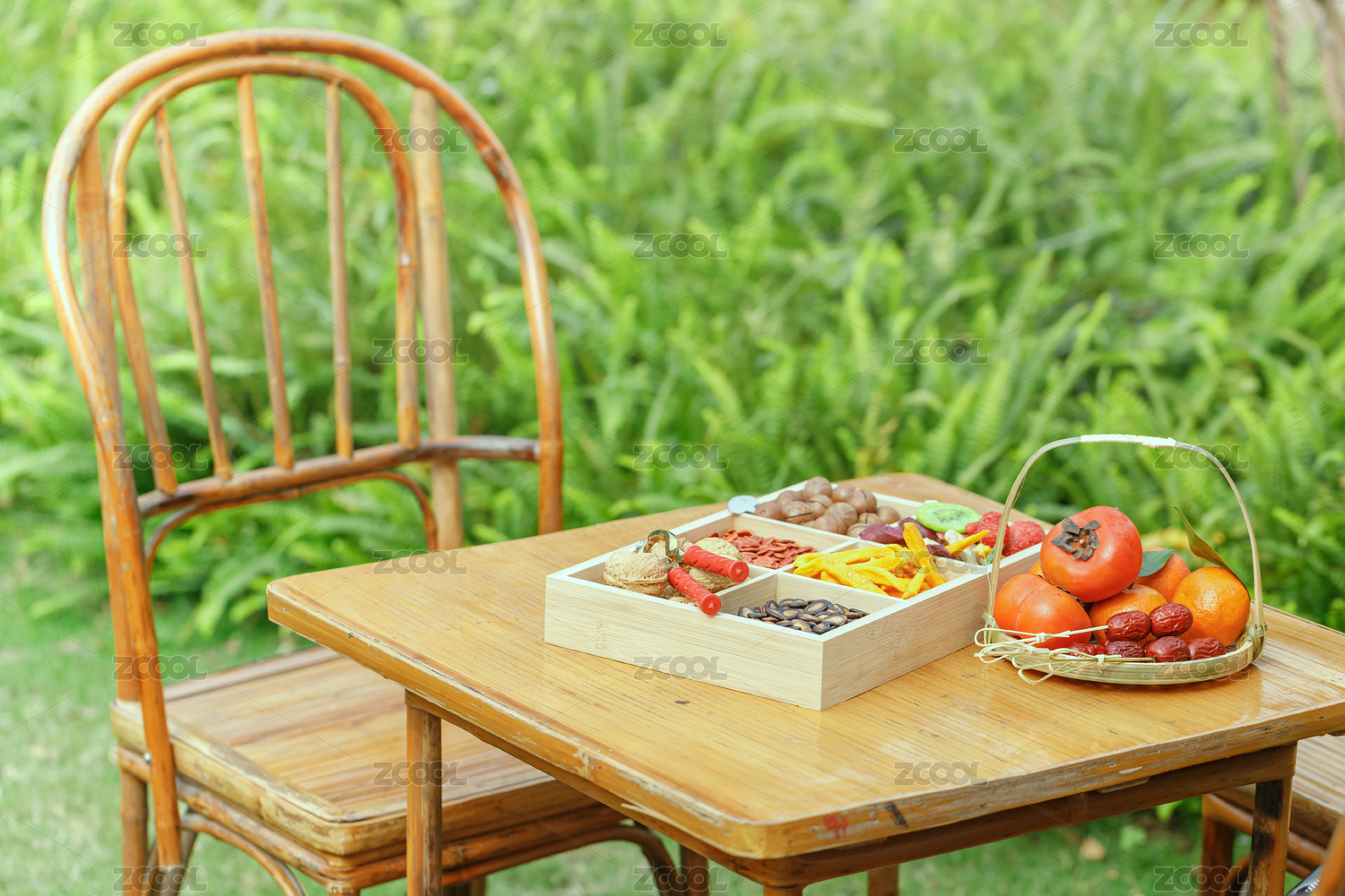 戶外木桌上的休閑零食