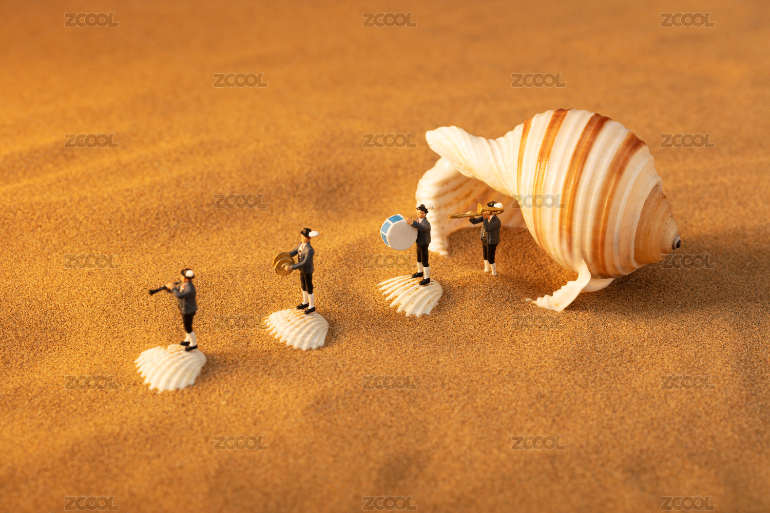 海邊的海螺里走出來一只樂隊(duì)站在貝殼上