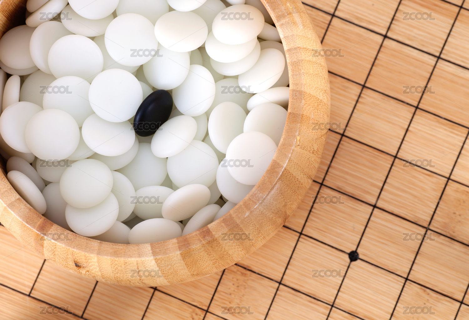 棋盒里一堆白子圍繞下的黑子