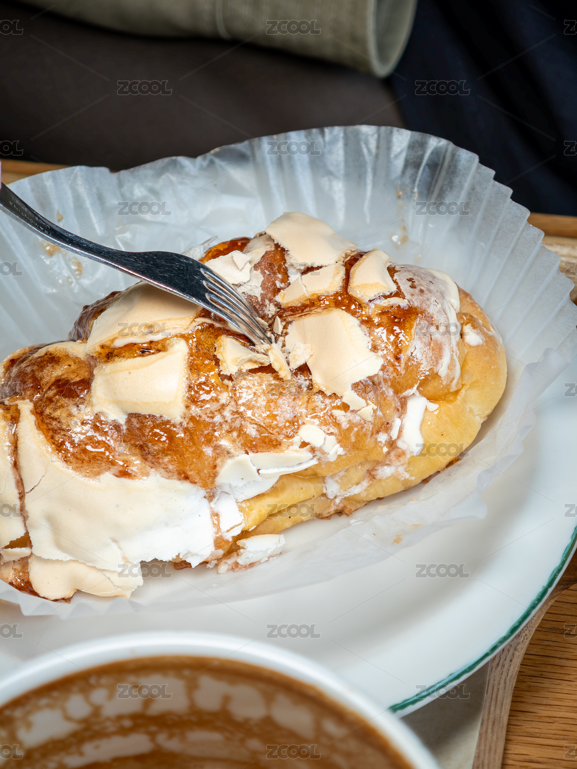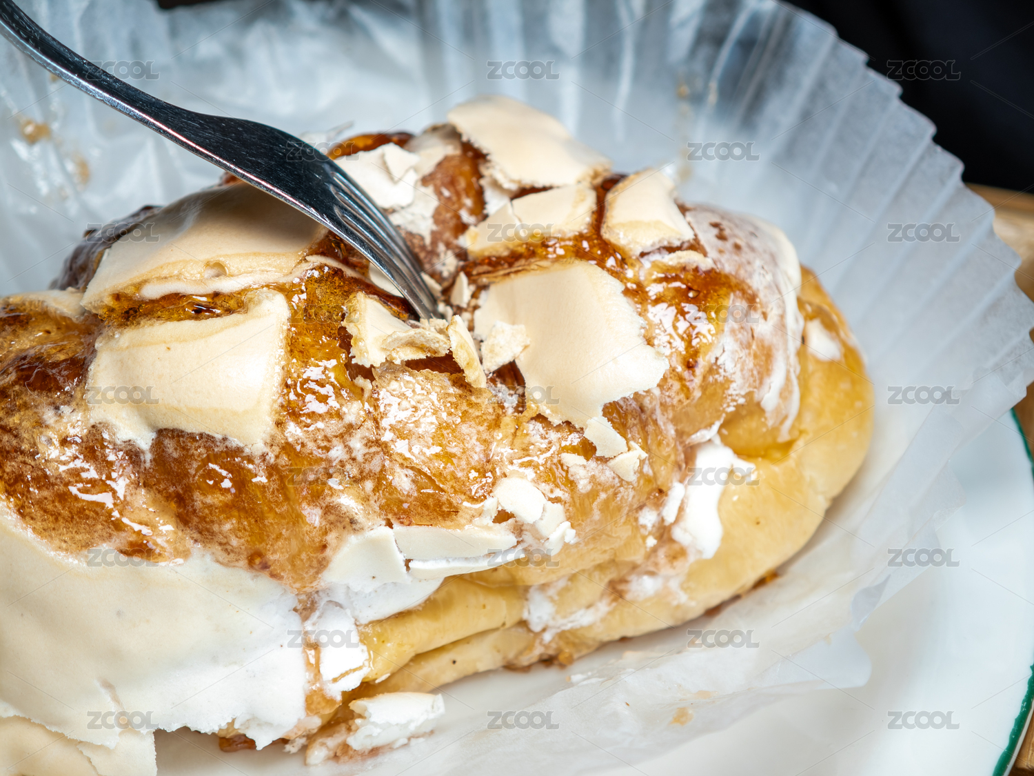 質(zhì)樸的木桌上炙烤蛋白霜甜面包