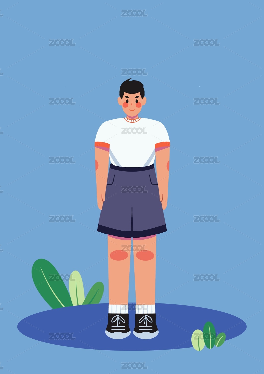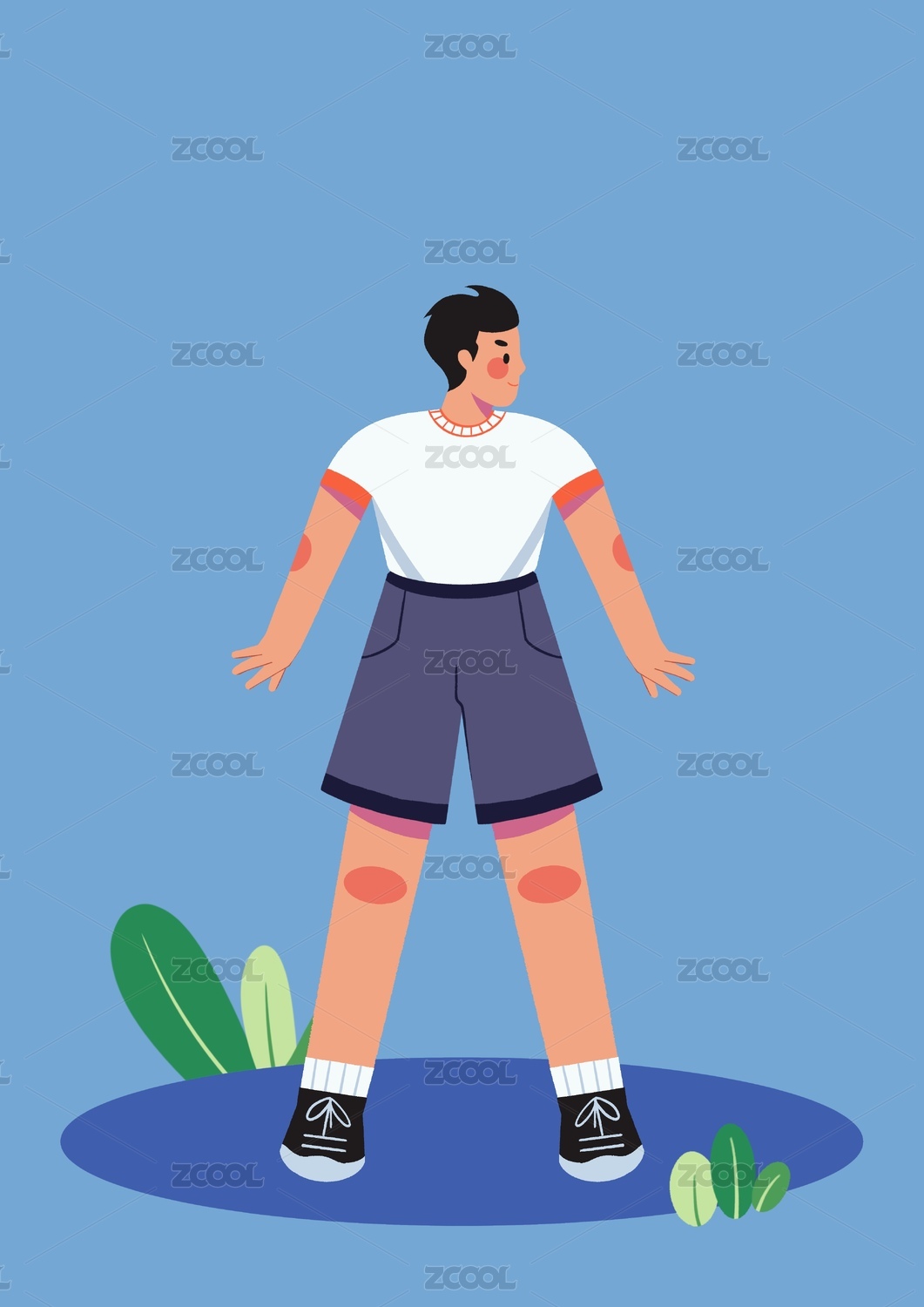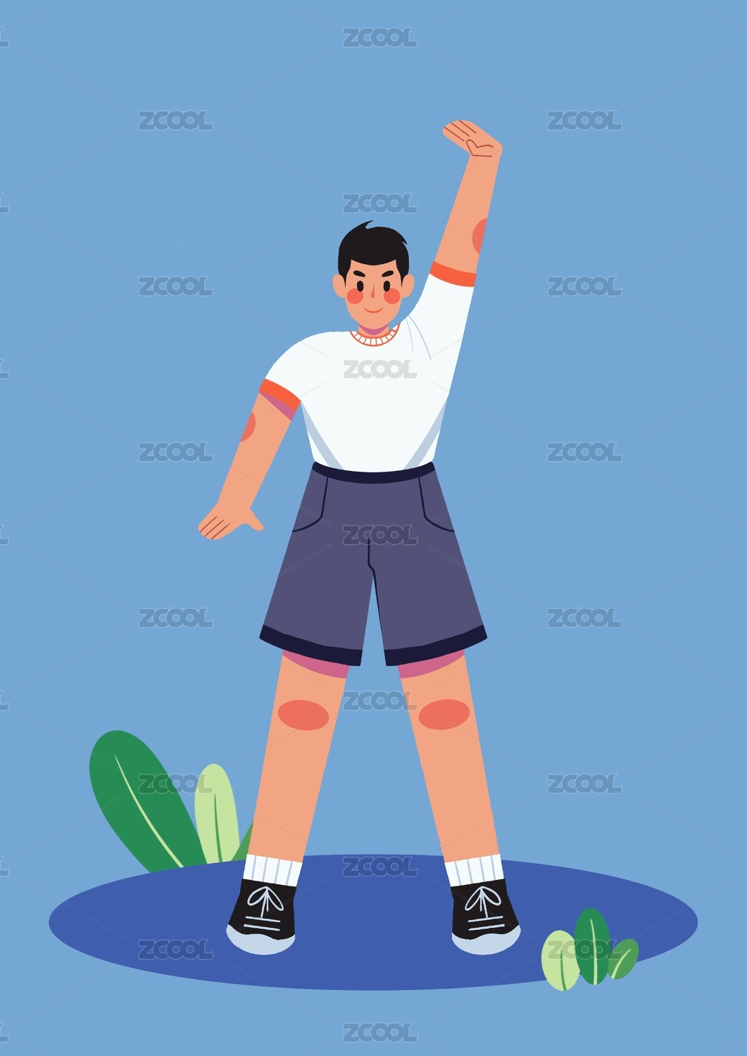 夏令營體能訓練三人做俯臥撐漫畫元素