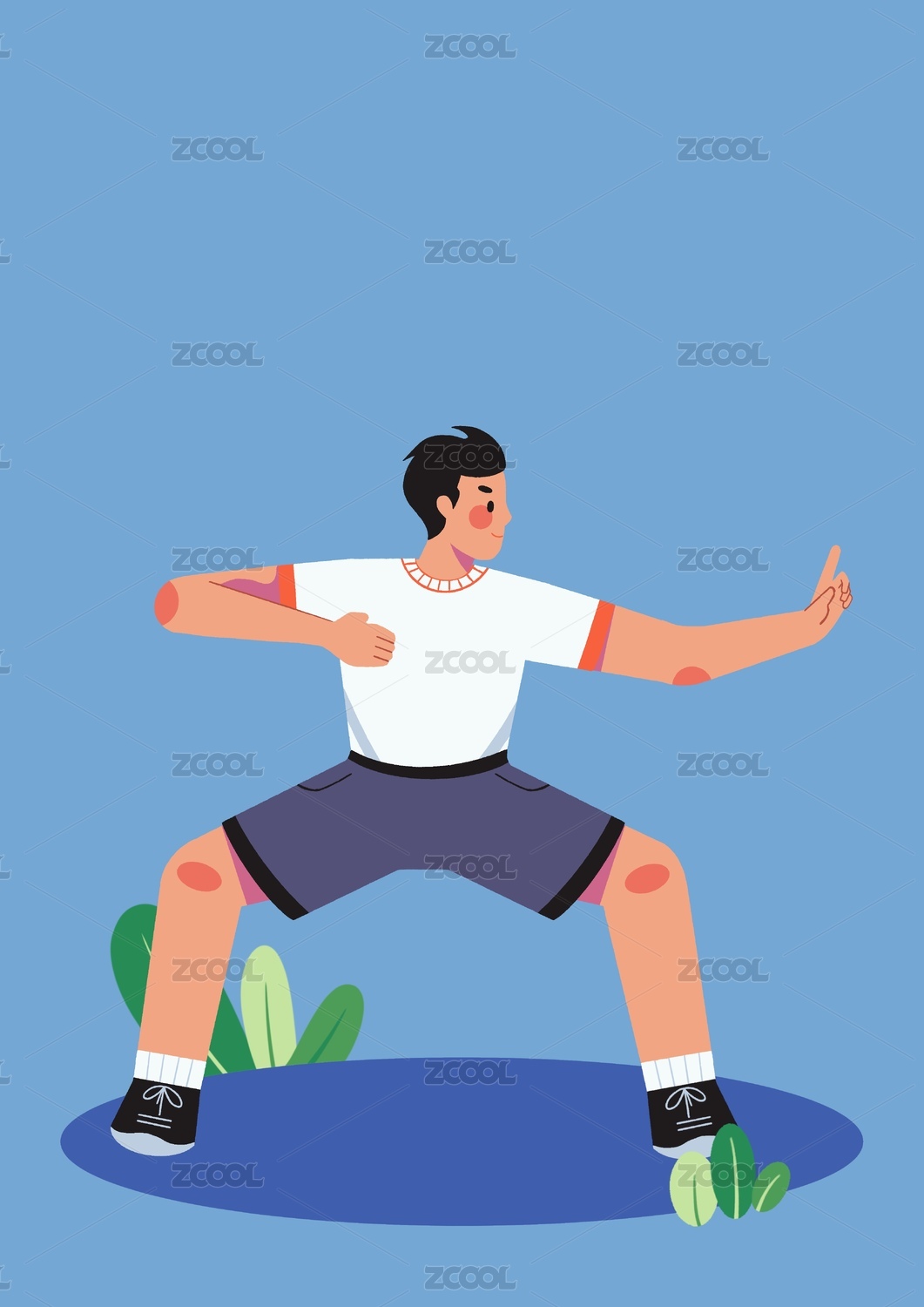 青年男子鍛煉運動養(yǎng)生八段第五式錦插畫