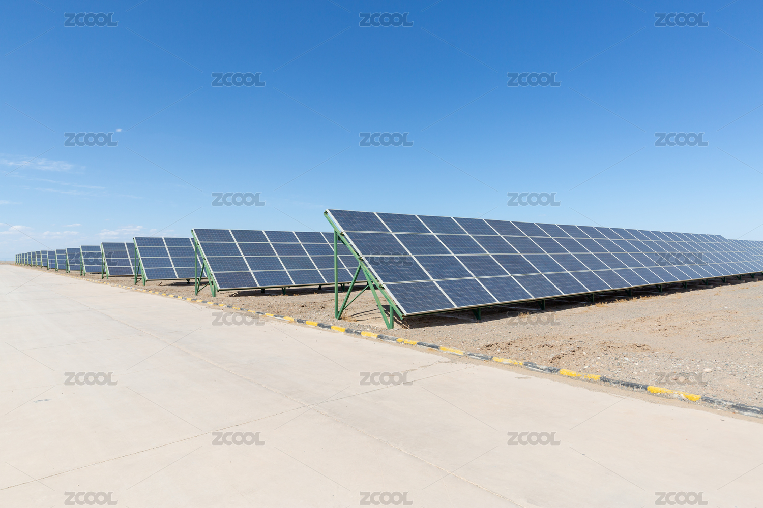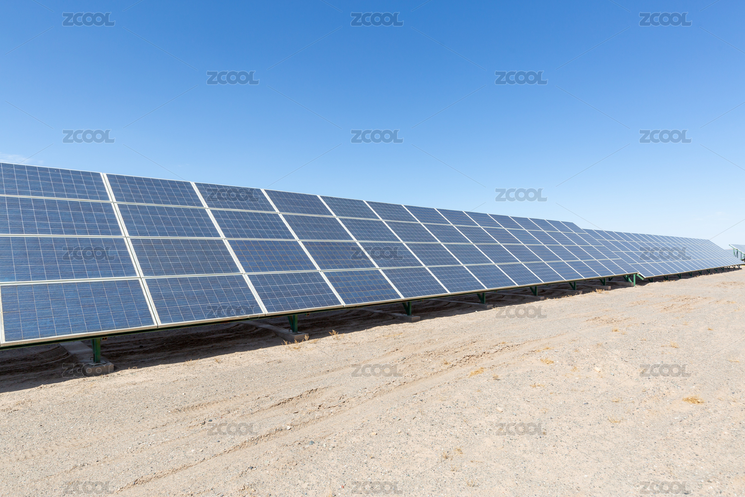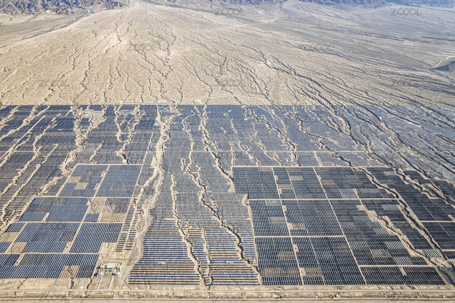 戈壁灘上依山而建的光伏太陽能板