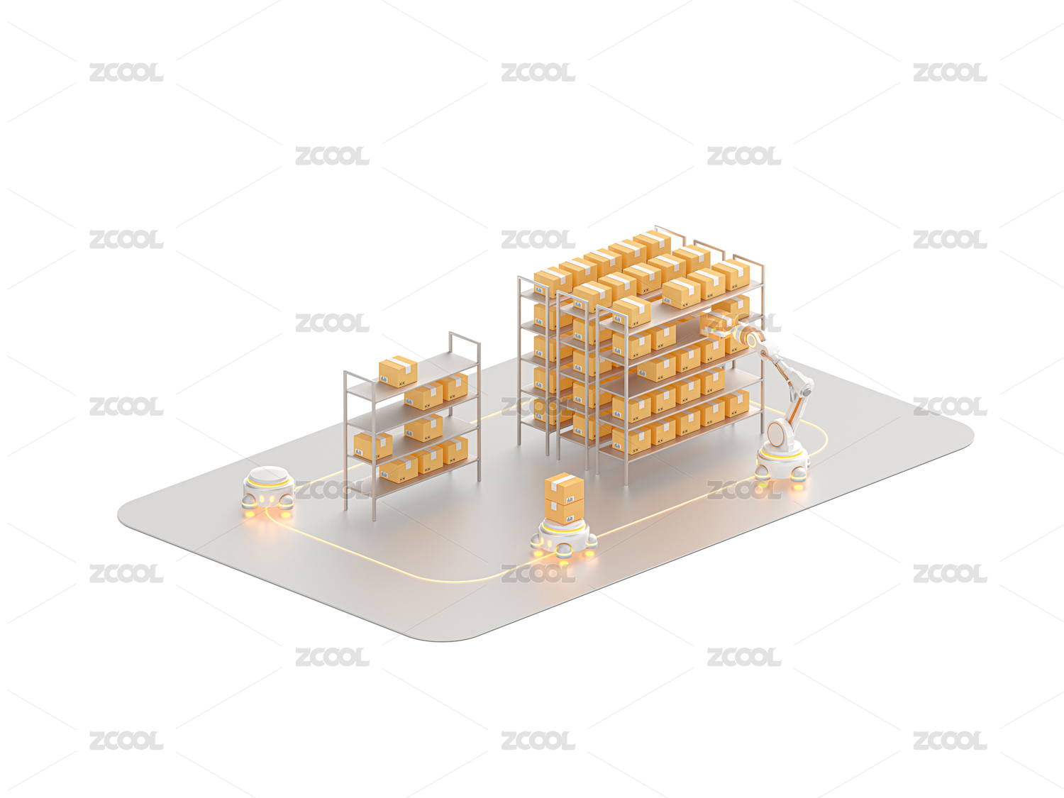 橙色智能自動化倉儲數(shù)字供應(yīng)鏈元素3D圖標(biāo)