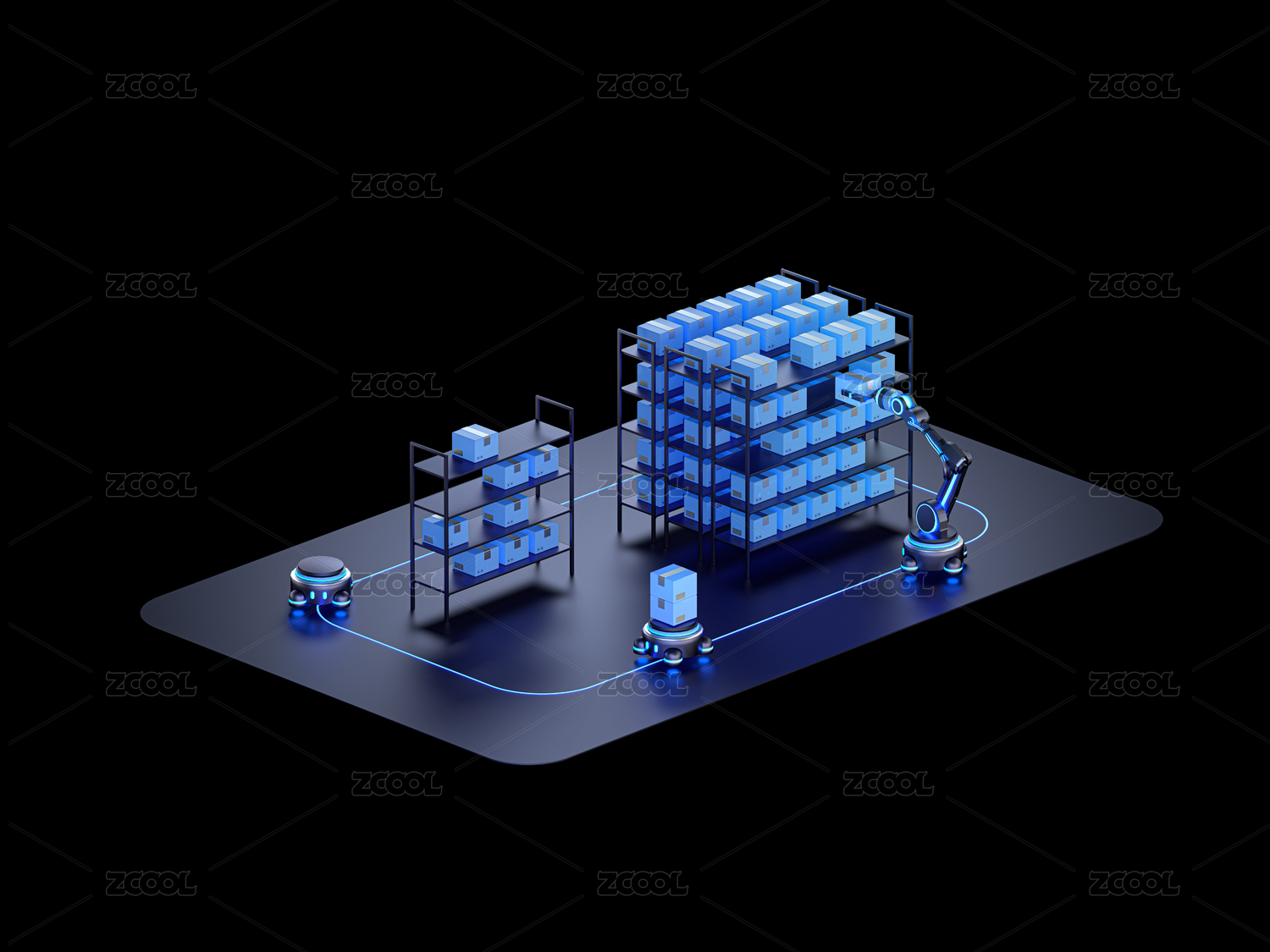 深色智能自動化倉儲數(shù)字供應(yīng)鏈元素3D圖標(biāo)