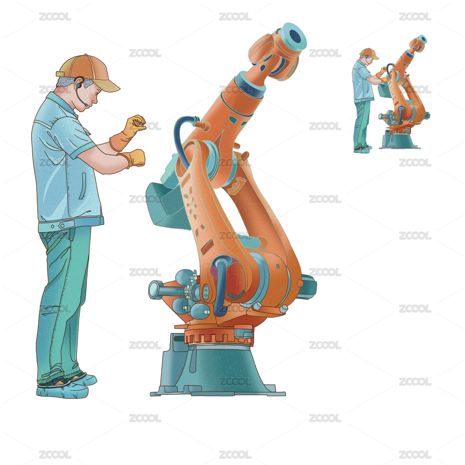 日報風(fēng)格機電工程人員維修自動化機械臂插畫