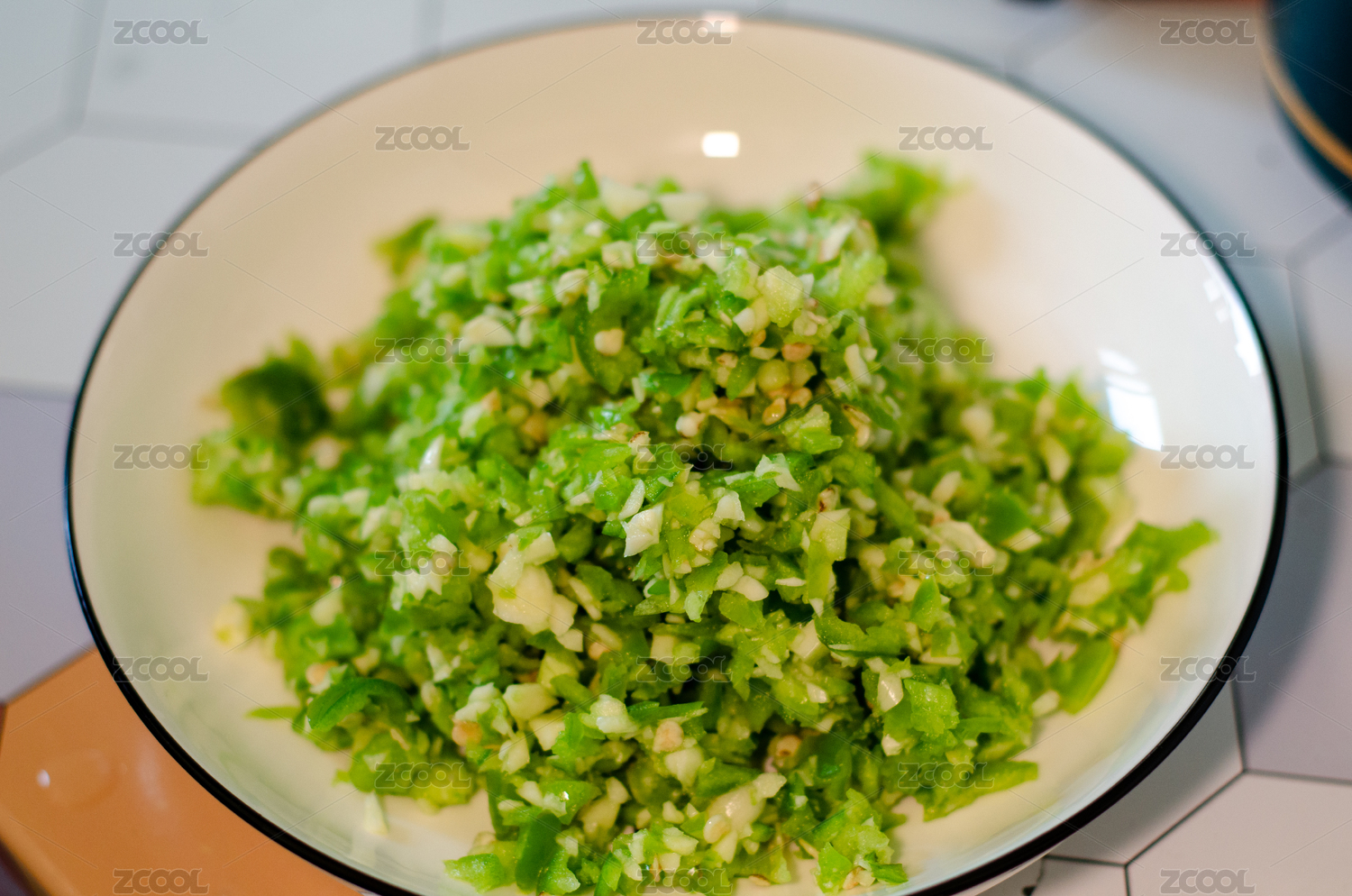 盤中切碎的綠色蔬菜