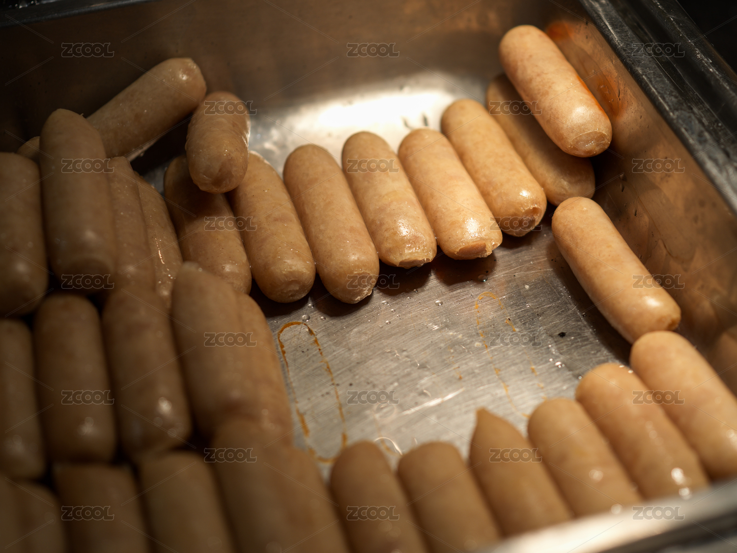 金屬托盤內(nèi)的小香腸