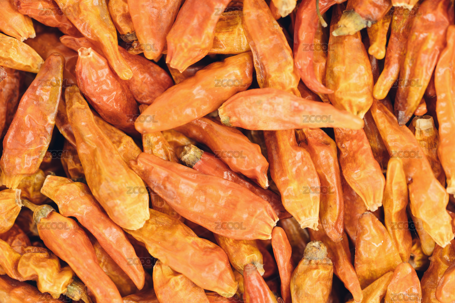 一堆橙色干辣椒特寫