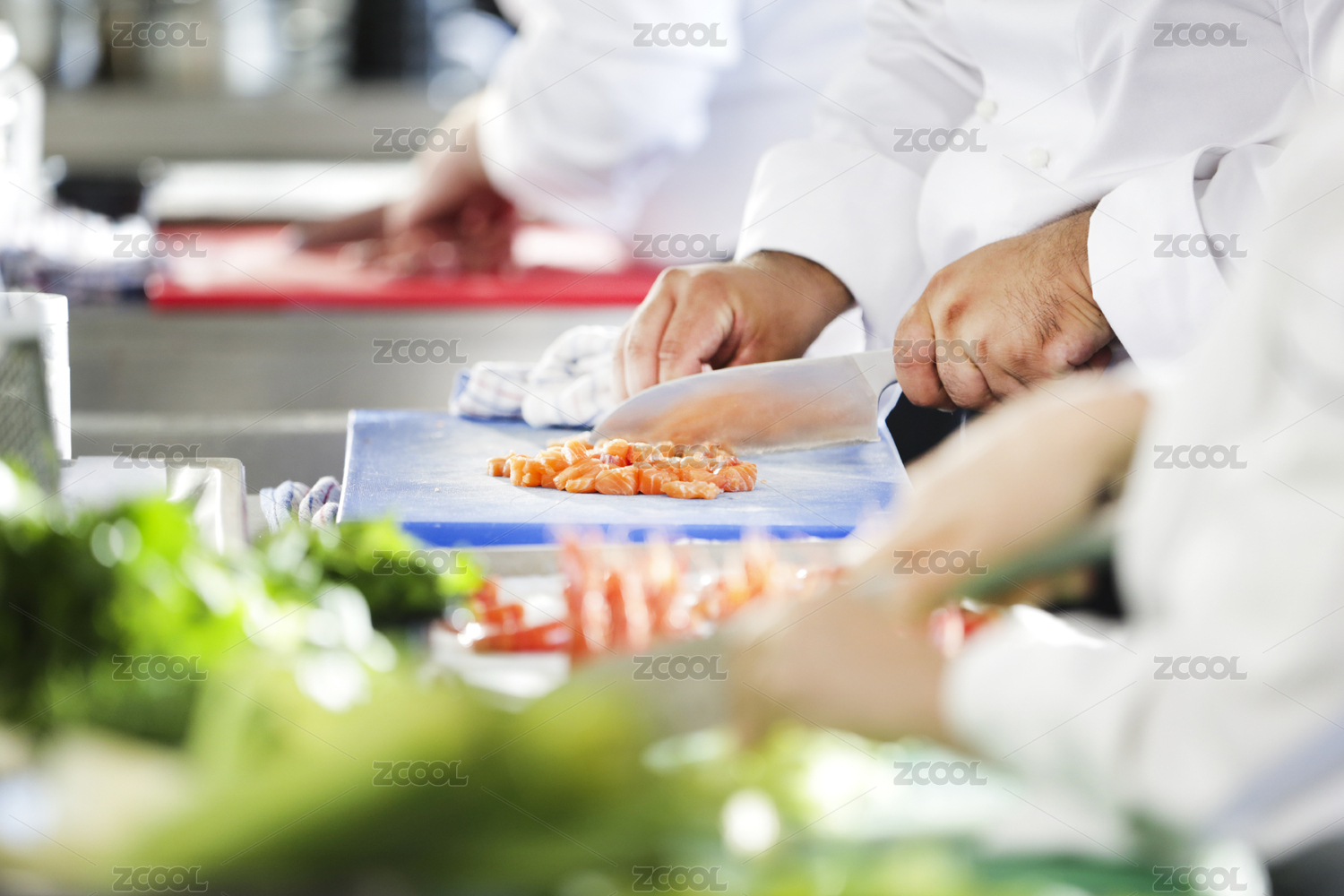 廚師在廚房里切菜