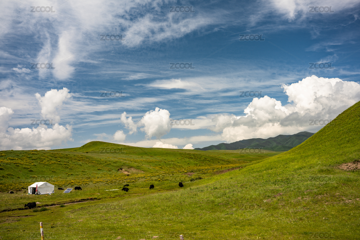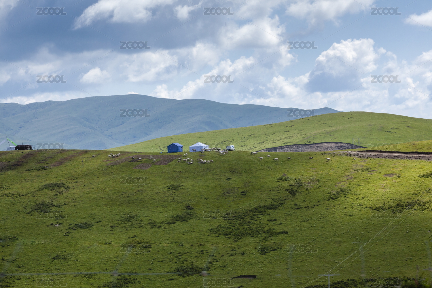 中國(guó)四川阿壩若爾蓋山脈牧場(chǎng)帳篷草原風(fēng)光