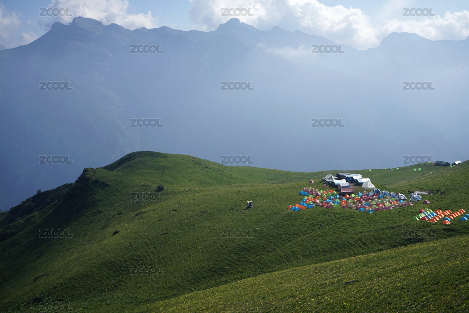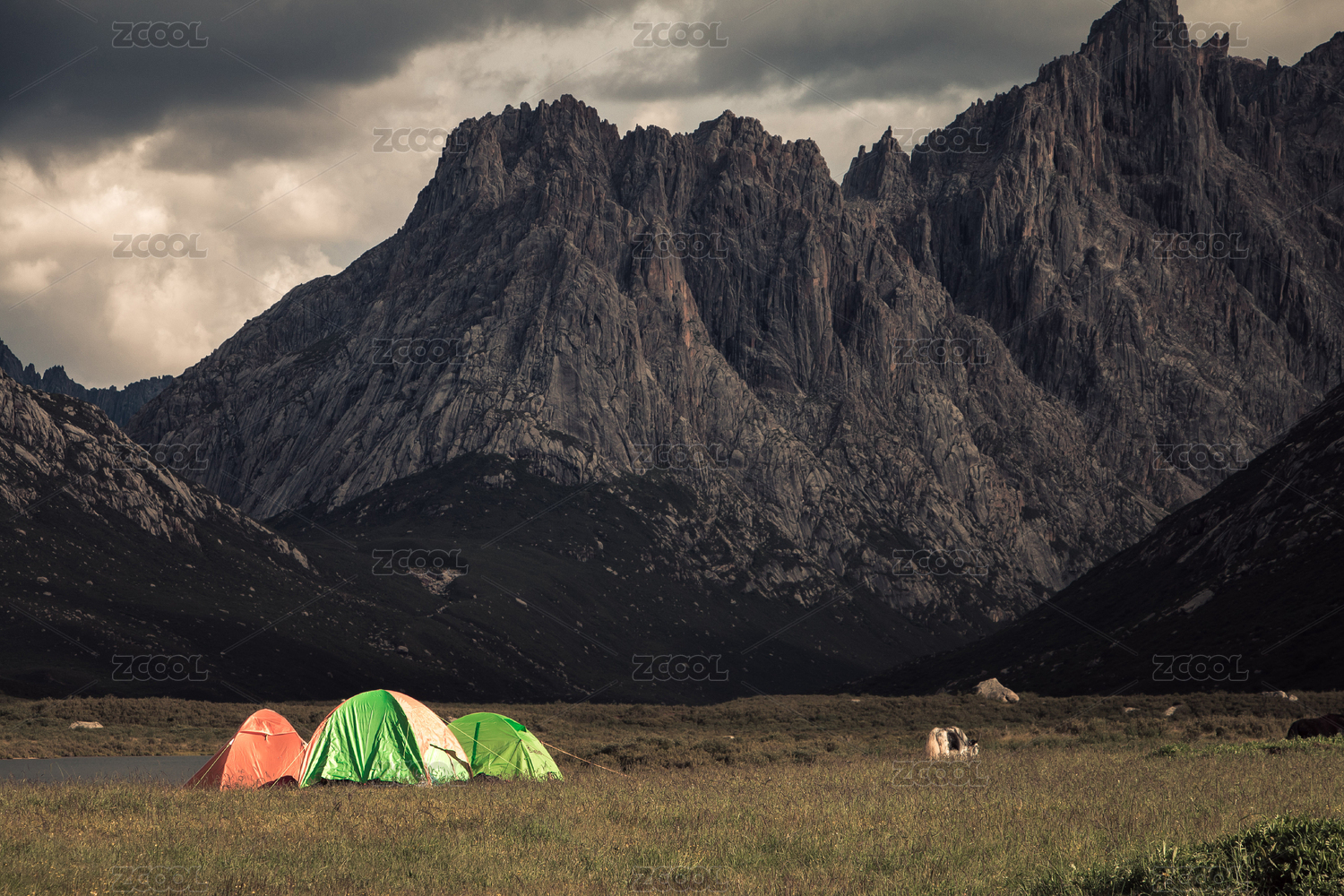 巍峨群山下的露營(yíng)帳篷