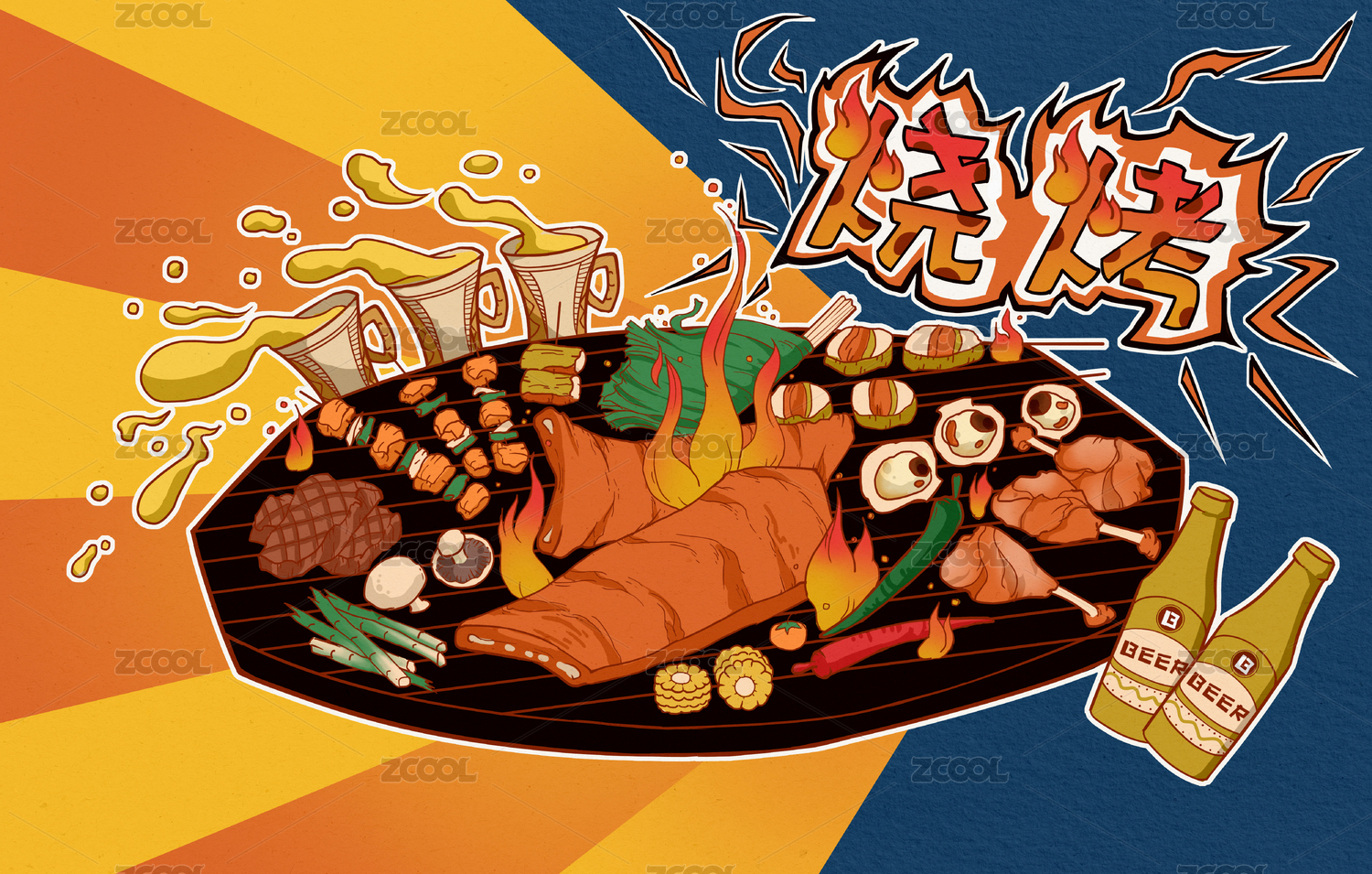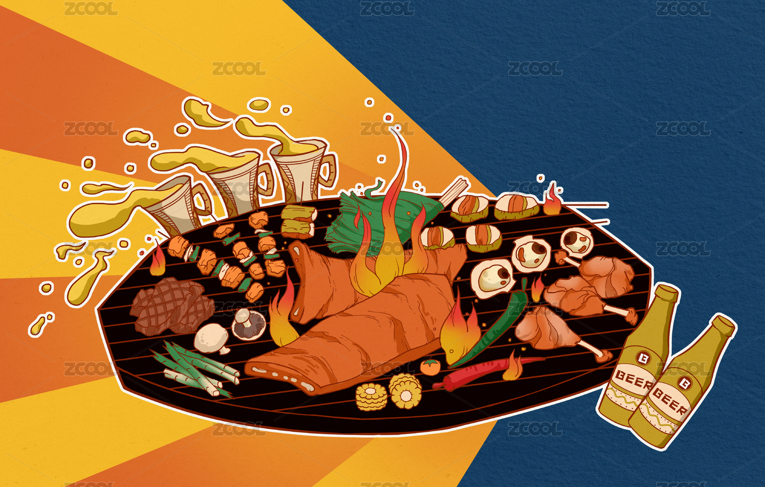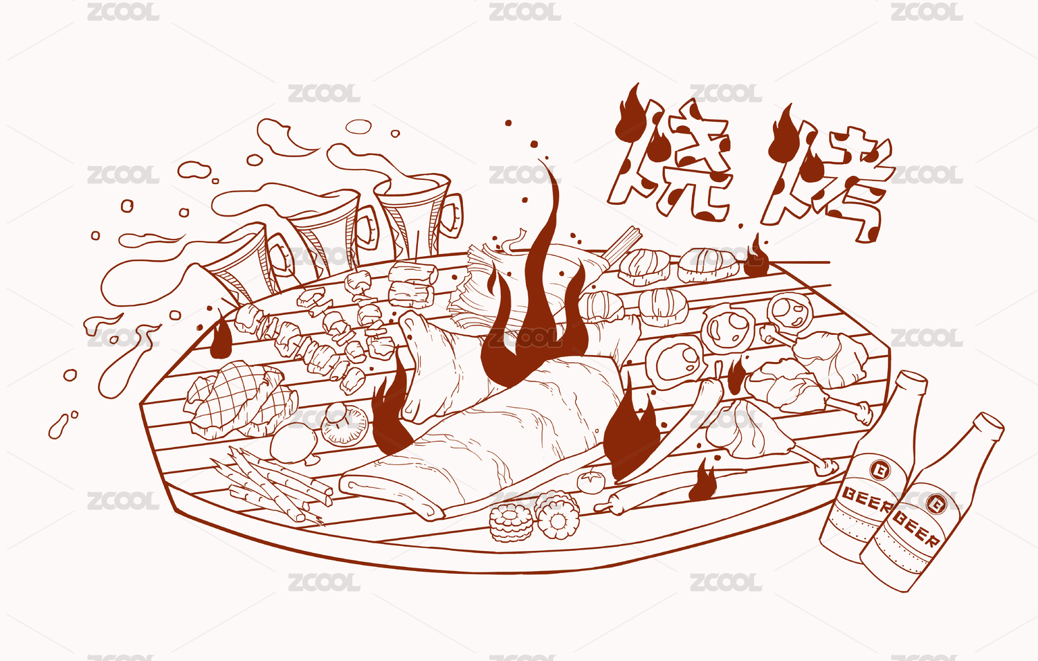 燒烤插畫炫酷感創(chuàng)意線稿插畫